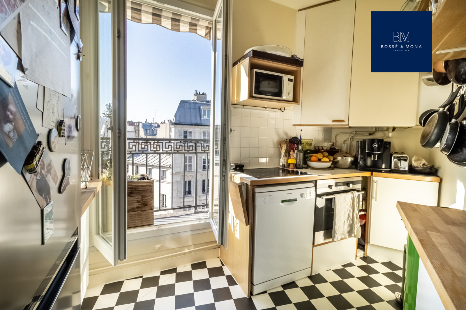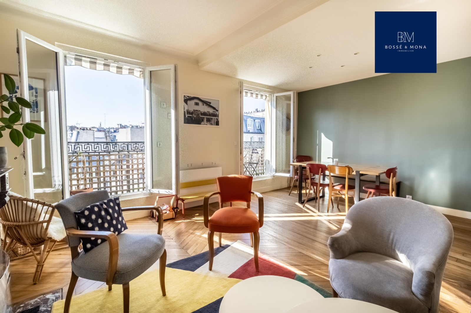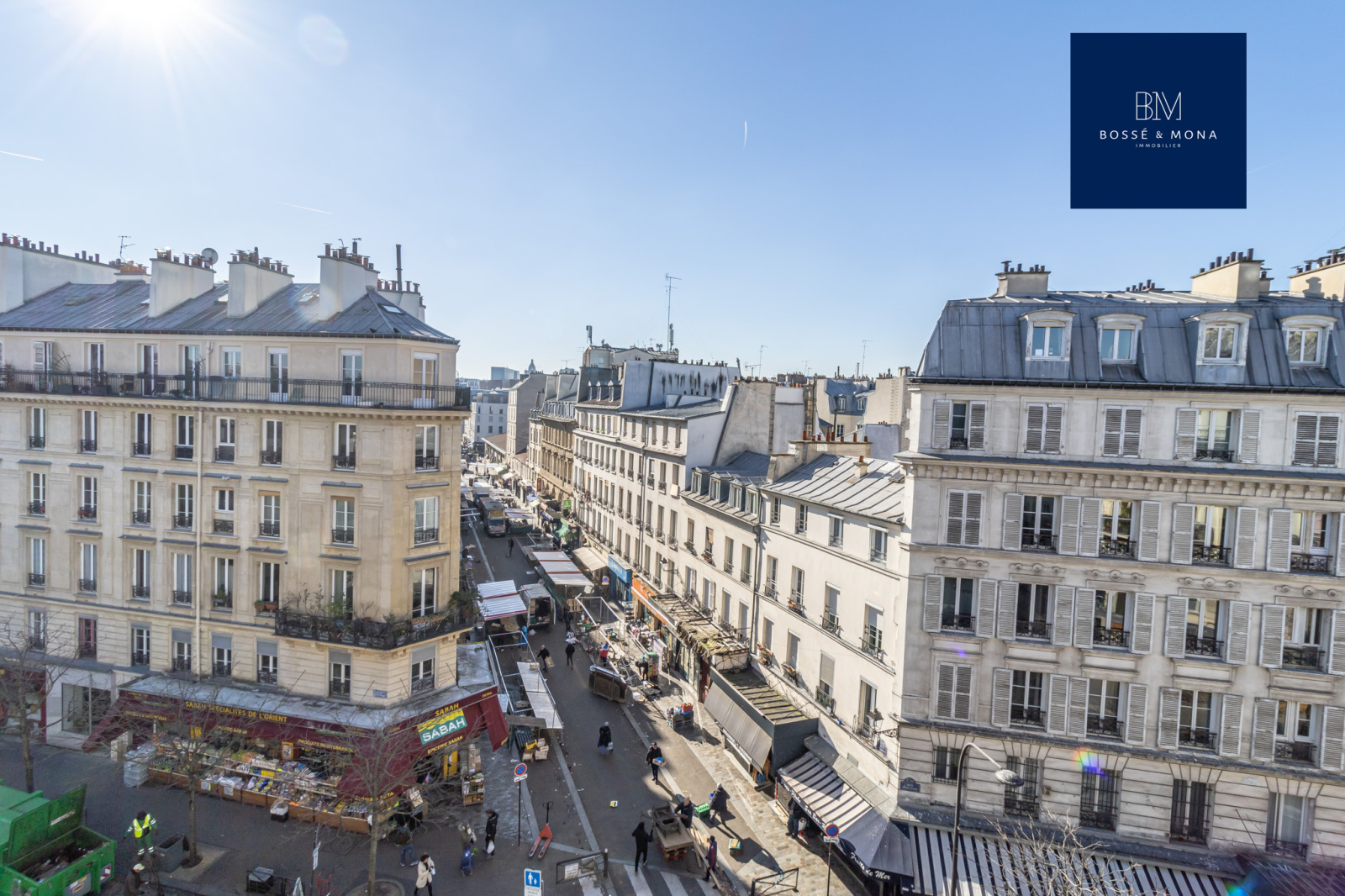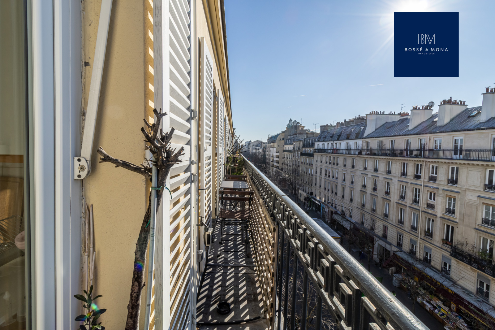 Marché d'Aligre - Bossé & Mona Immobilier, vous propose à la vente cet appartement de 65m2, avec un balcon filant de 10m2, dans un immeuble de 1850, situé rue Crozatier, à 200m du métro Ledru-Rollin.