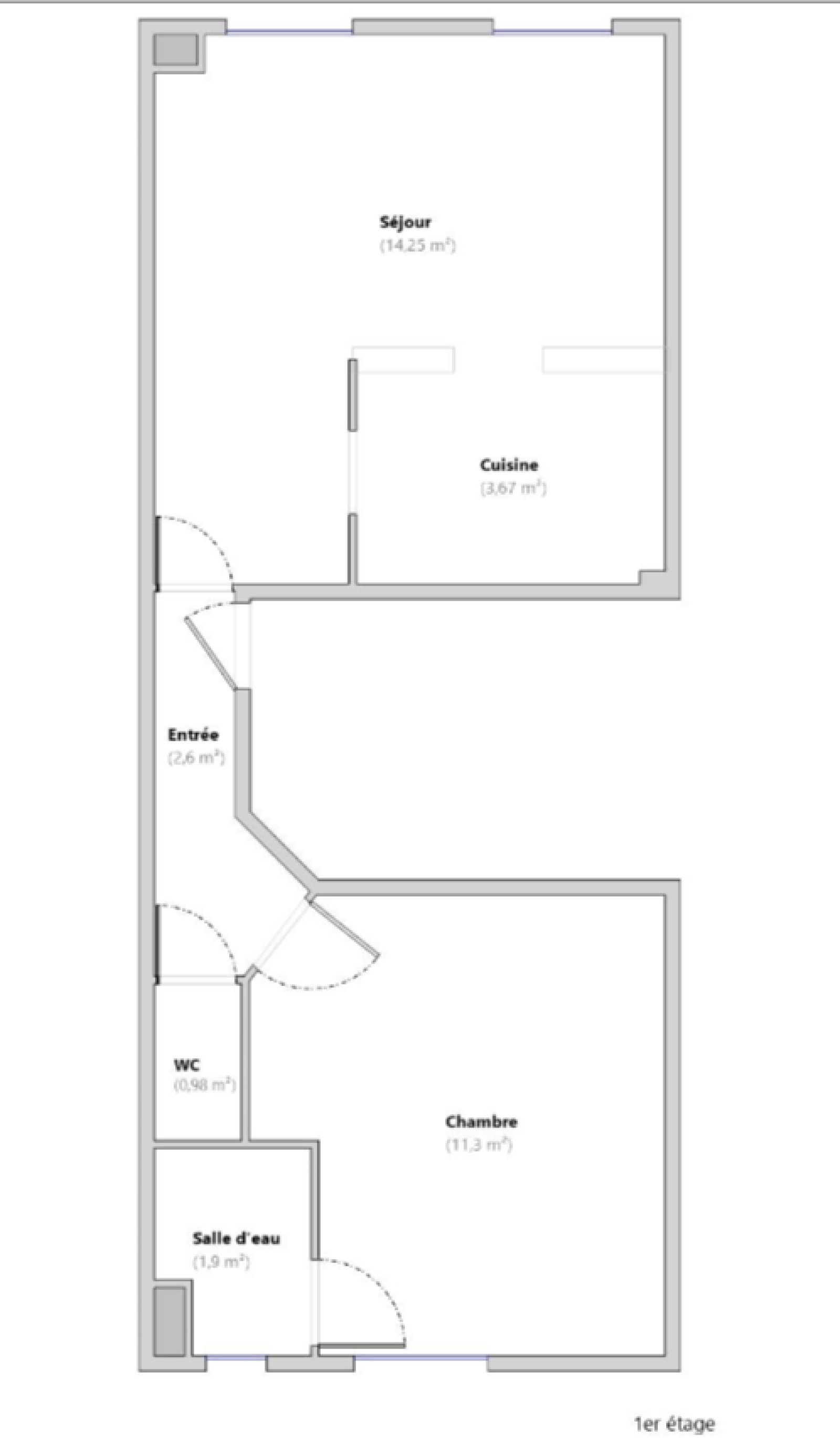 Le bien, unique appartement du palier, au 1er étage sans ascenseur d'une petite copropriété, se compose d'une cuisine ouverte sur le séjour de 18m2 exposé Nord-Est, d'une chambre sur cour de 11m2 exposée Sud-Ouest, d'une salle de bain et d'un WC indépendant.