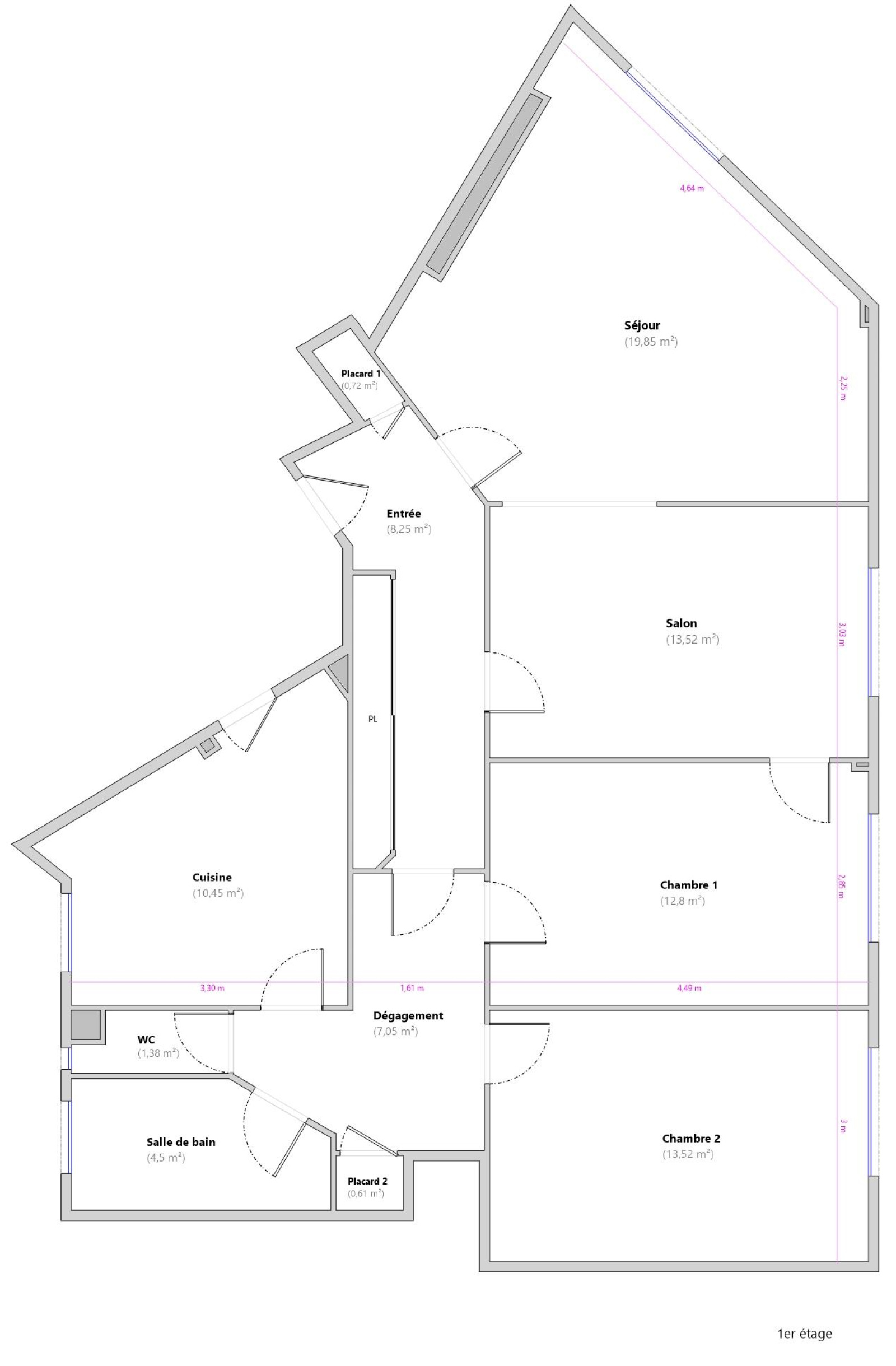 Le bien est situé au 1er étage avec ascenseur d'un bel immeuble ancien. Il se compose d'une entrée avec rangements, d'un double séjour lumineux de 33m2 exposé Sud-Ouest (possibilité de faire une 3ème chambre), d'une cuisine indépendante de 10m2, de 2 chambres de 13m2 chacune, d'une salle de bains, d'un WC indépendant et d'une cave.