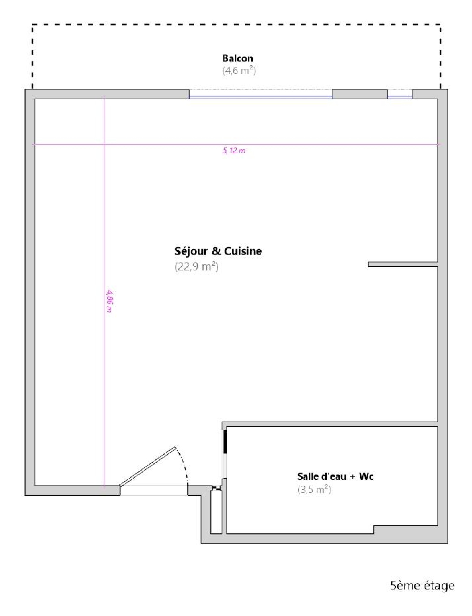 Le bien, au 5ème étage avec ascenseur, se compose d'une pièce de vie de 23m2 exposée Sud-Ouest donnant accés à un balcon de 5m2 sans vis-à-vis, d'une cuisine ouverte entièrement équipée et aménagée, et d'une salle d'eau avec WC.