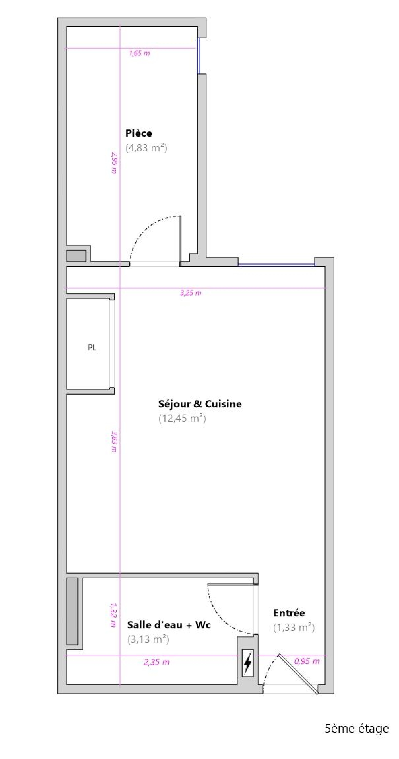 Ce bien, au 5ème étage avec ascenseur, se compose d'une entrée, d'un séjour au calme sur cour de 13m2 exposé Nord-Ouest avec une cuisine ouverte, d'une chambre et d'une salle d'eau avec WC.
