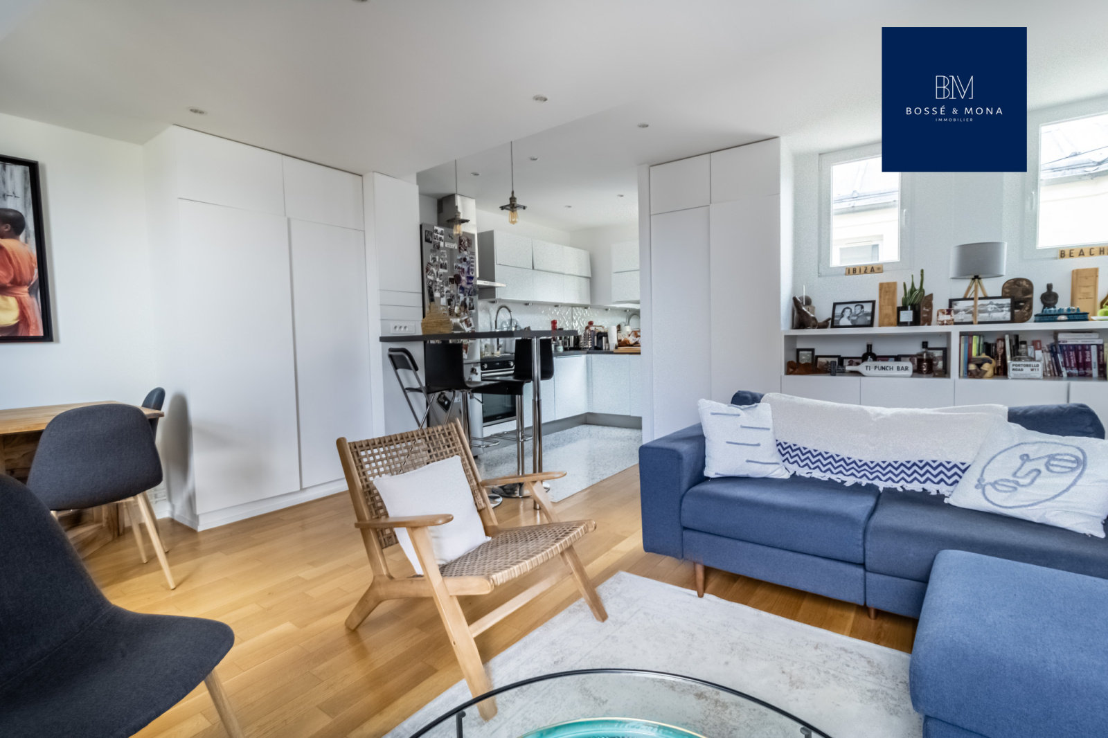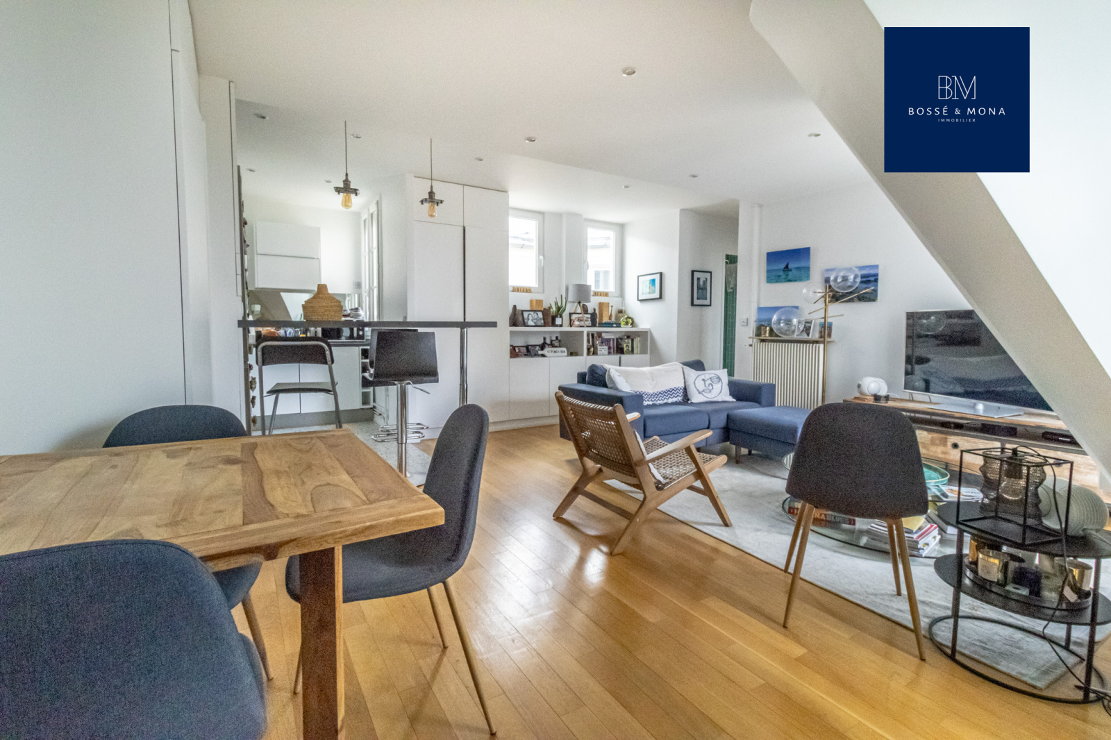 Ce bien, en parfait état, sans vis-à-vis et traversant, se compose d'une entrée avec coin bureau, d'un séjour de 34m2 avec cuisine ouverte entièrement équipée et aménagée, d'une chambre de 11m2 avec rangements, d'une salle d'eau avec WC de 6m2 et d'une cave.