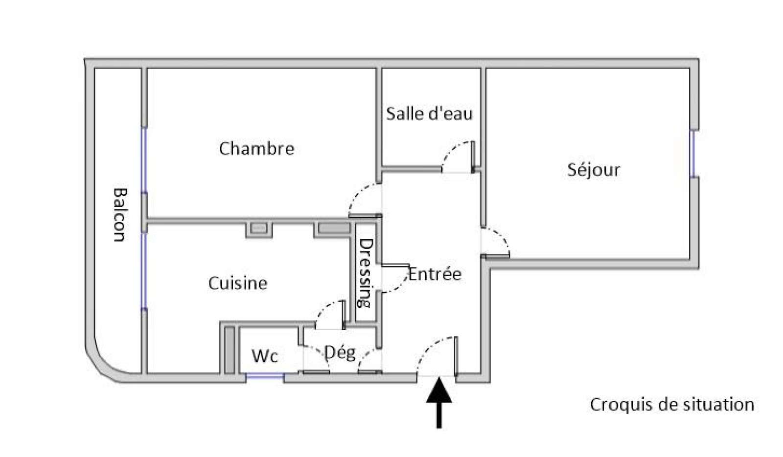 Ce bien, situé au 3ème et dernier étage sans ascenseur d'une petite copropriété, se compose d'une entrée, d'un séjour de 17m2 exposé Nord-Ouest, d'une chambre de 11m2 au calme sur cour, d'une cuisine indépendante de 7m2 donnant accès à un balcon de 6m2, d'une salle d'eau, d'un WC indépendant, d'un dressing et d'une cave.