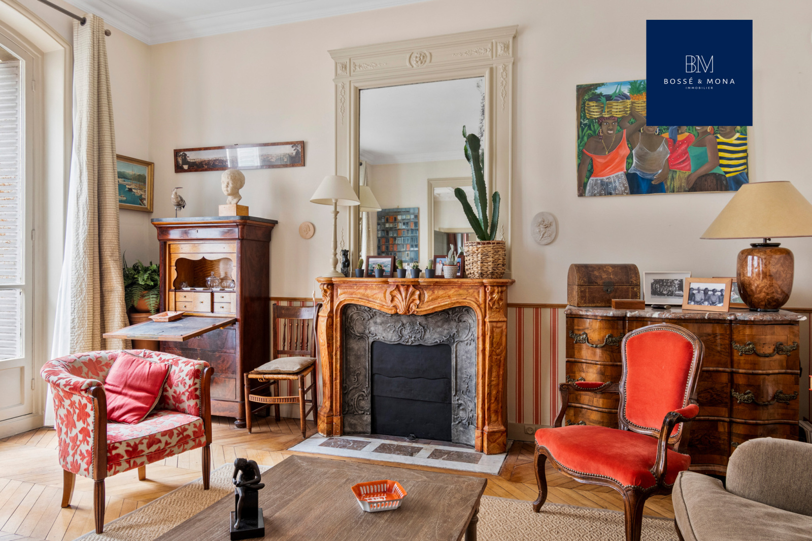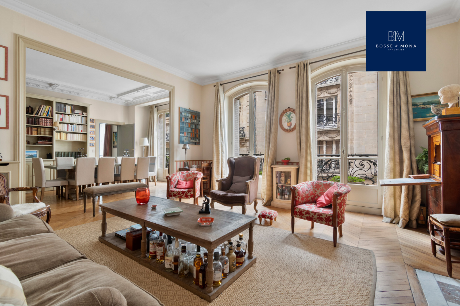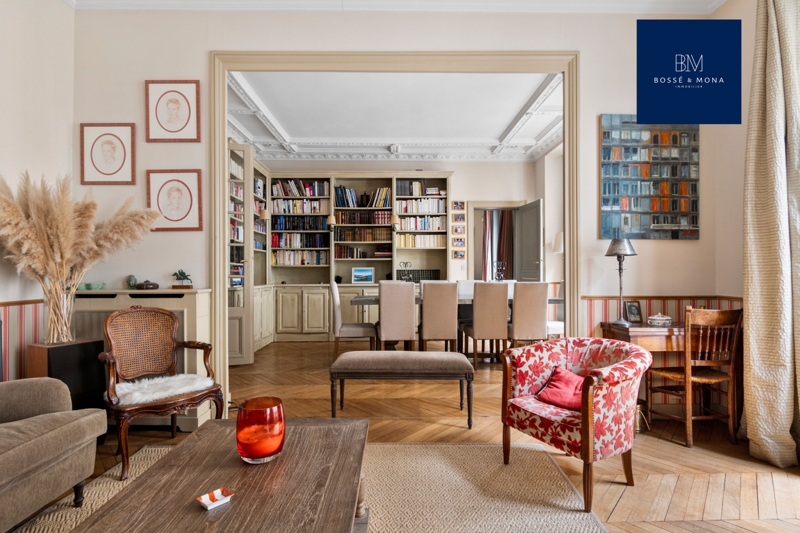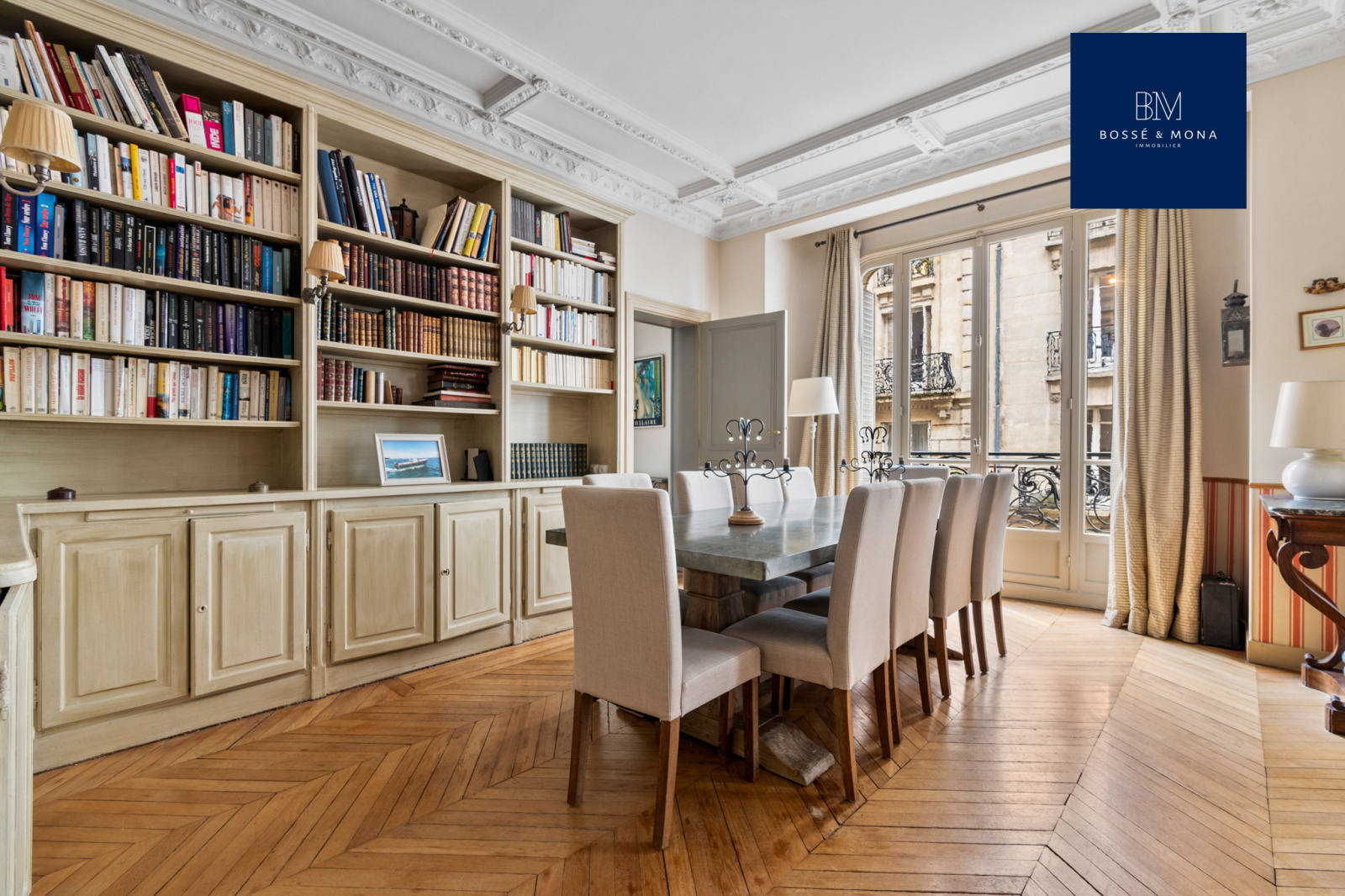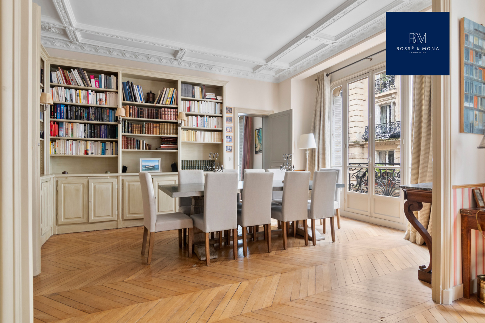 Exclusivité - Quartier Passy - Bossé & Mona Immobilier, vous propose à la vente ce bel appartement de 139m2 habitables, 138m2 Carrez, situé dans une rue calme, à 300m des métros Passy et Muette.