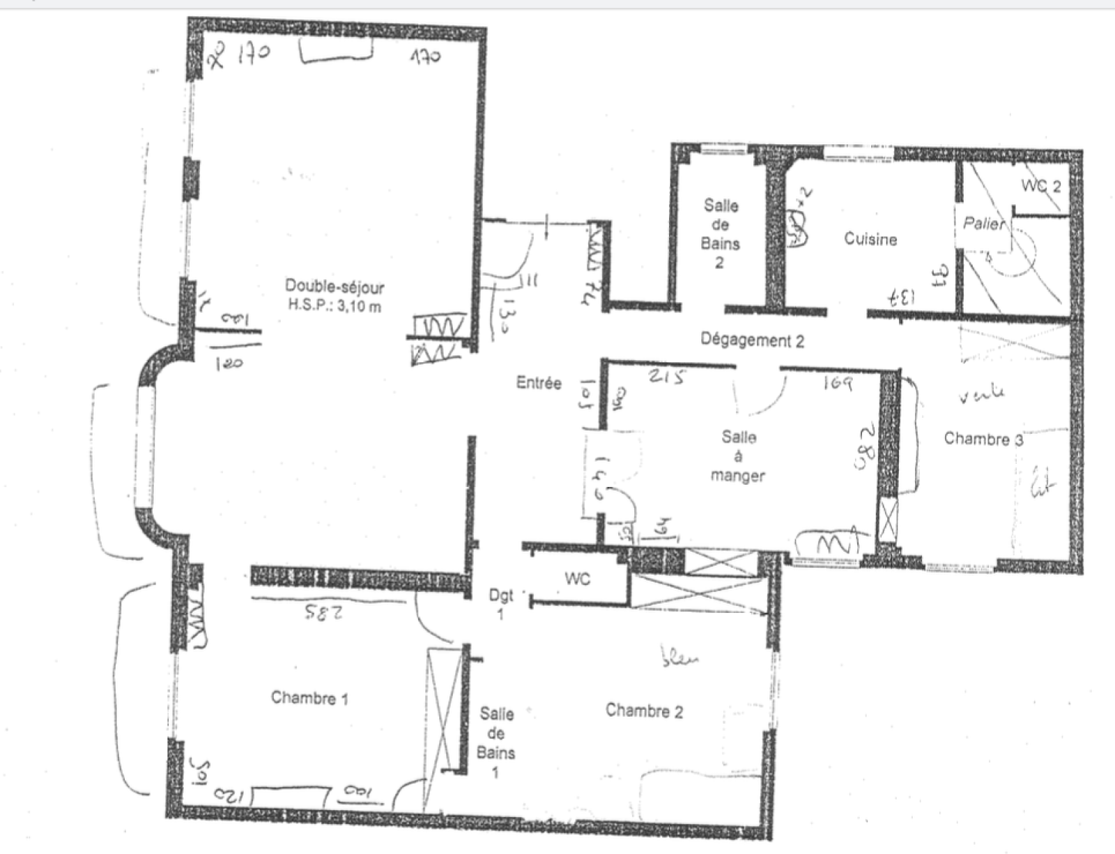Le bien, calme et traversant, est situé au 2ème étage avec ascenseur d'un bel immeuble ancien. Unique appartement sur le palier, il se compose d'une entrée de 12m2, d'un double séjour de 45m2 exposé Nord-Est (3.10m de hauteur sous plafond) donnant accès à un balcon (il est possible de faire une cuisine ouverte dans le double séjour), de 4 chambres de 18m2, 15m2, 14m2 et 11m2 (3 chambres sur cour et 1 sur rue), d'une salle de bains de 5m2, d'une salle d'eau avec WC, d'une cuisine indépendante de 7m2, d'un débarras et d'un WC indépendant.