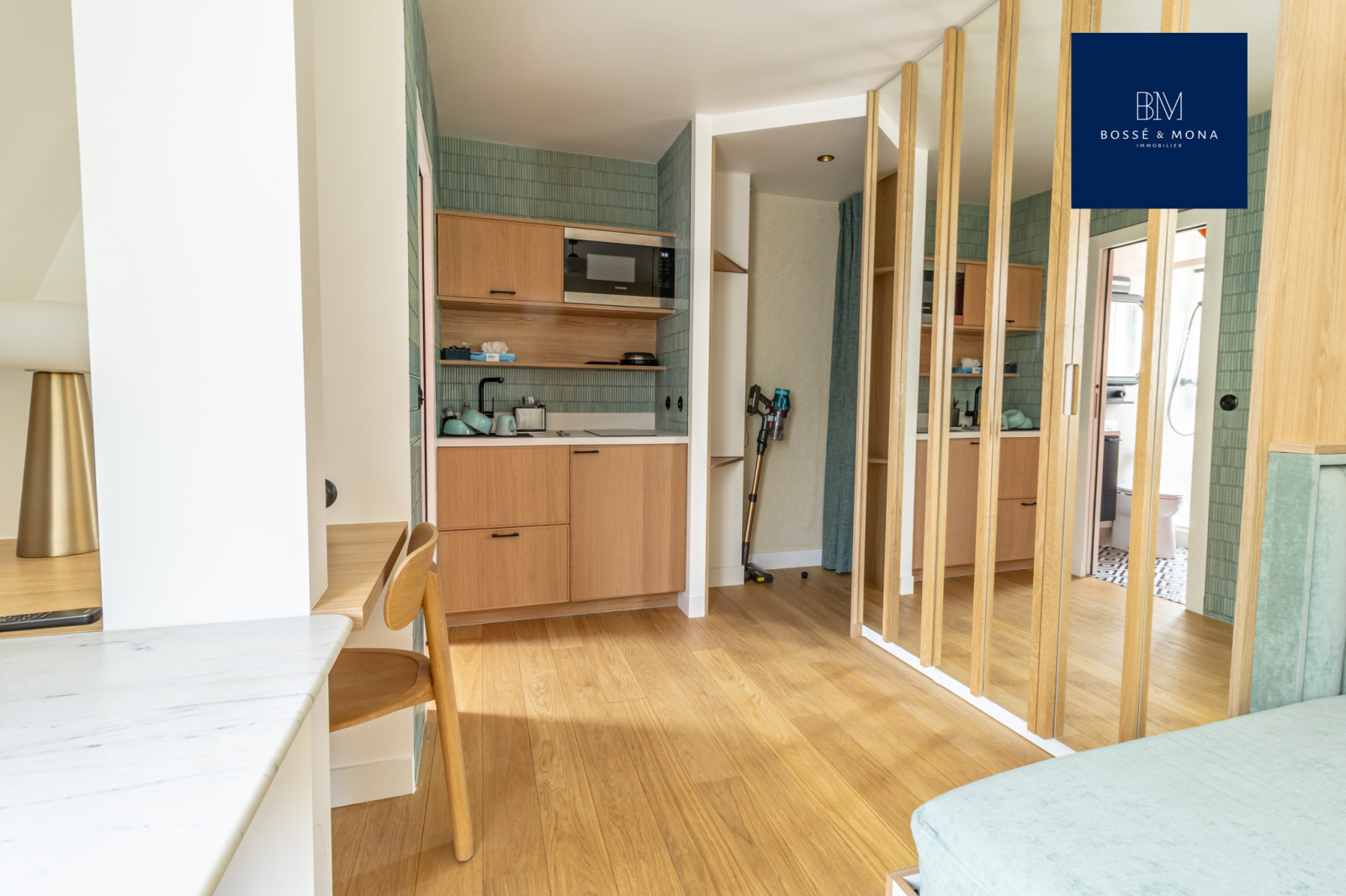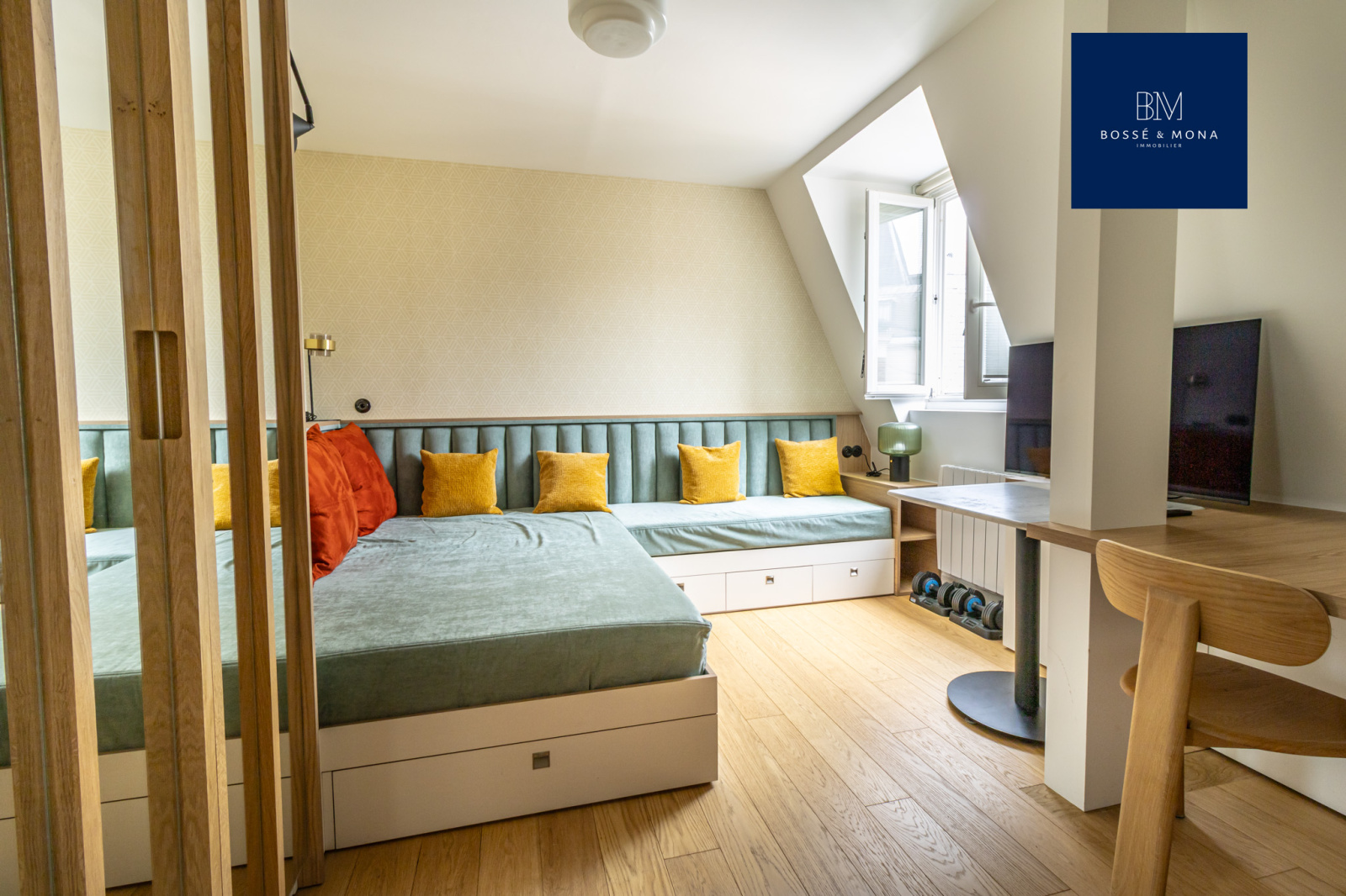 Le studio, vendu meublé, dispose de parquet, de fenêtres en double vitrage, de rangements et d'un DPE D.