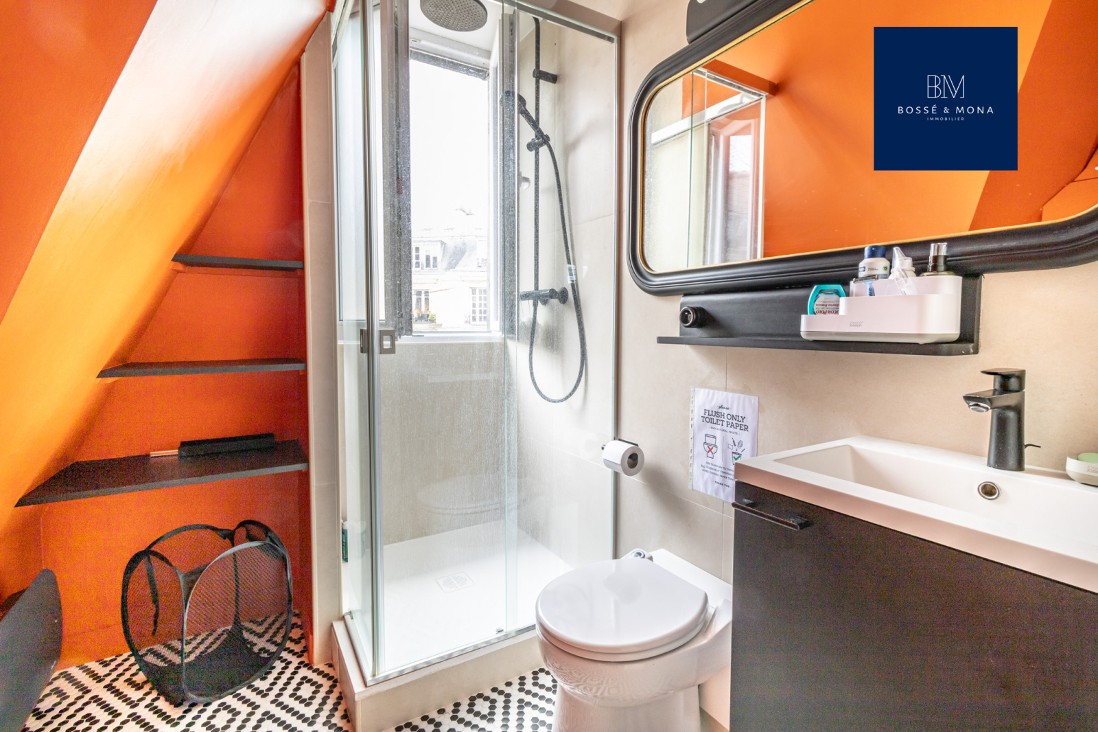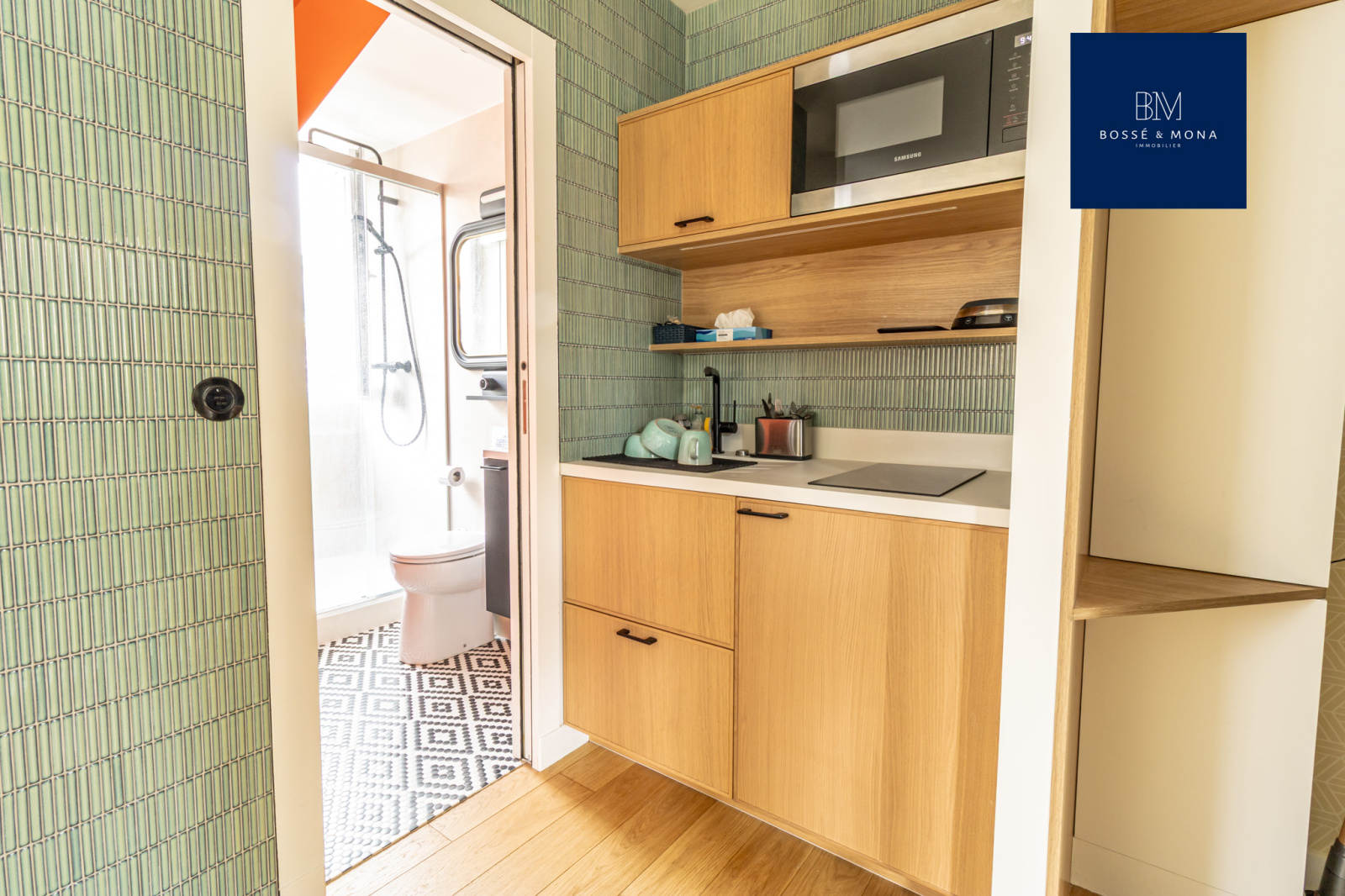 Le bien, calme, exposé Sud-Est, est au 6ème et dernier étage avec ascenseur jusqu'au 5ème étage. Il se compose d'une pièce principale de 15m2 avec cuisine ouverte et d'une salle d'eau avec WC sanibroyeur.