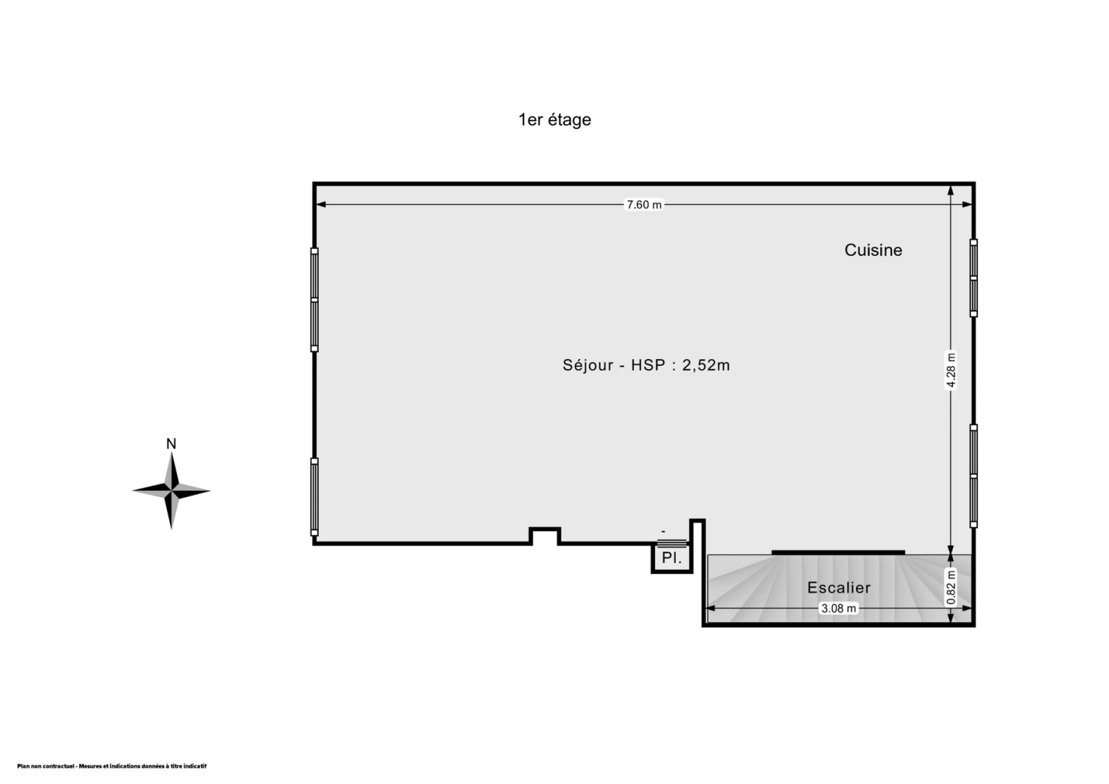 Au 2ème niveau: d'un séjour de 33m2 avec cuisine à installer.