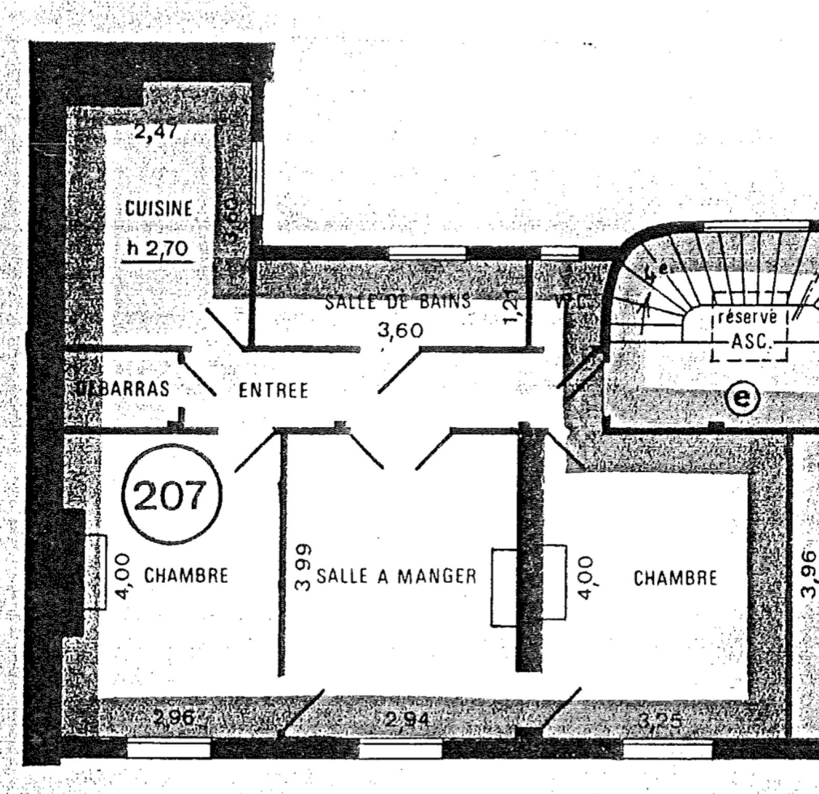 Le bien, au 3ème étage avec ascenseur d'un immeuble ancien, se compose d'une entrée, d'un séjour exposé Est de13m2, d'une cuisine indépendante entièrement équipée et aménagée de 8m2, de 2 chambres de 13m2 et 11m2, d'un dressing, d'une salle de bains et d'un WC indépendant.