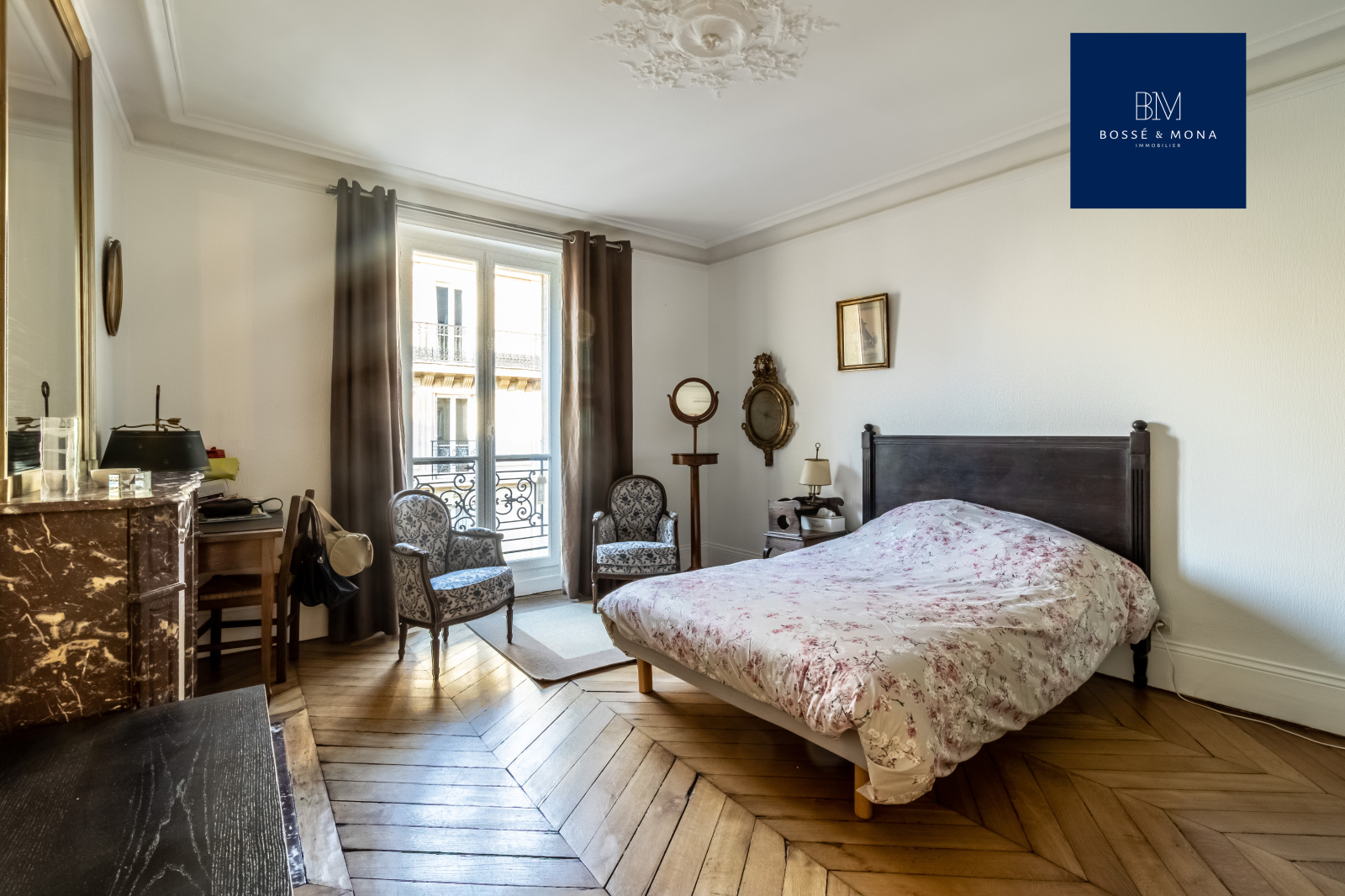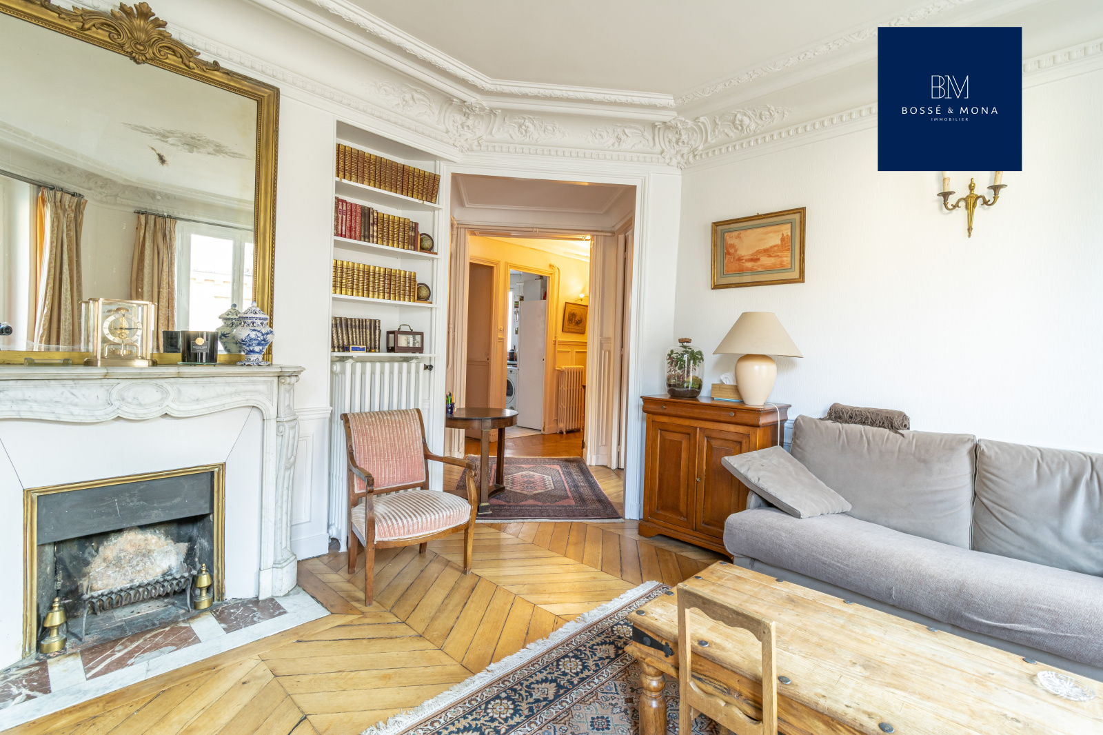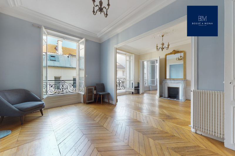 Bossé & Mona immobilier, vous propose à la vente cet appartement de 91m2 (89m2 carrez), situé dans un bel immeuble d'angle de 1860, à 700m de la place des Ternes.