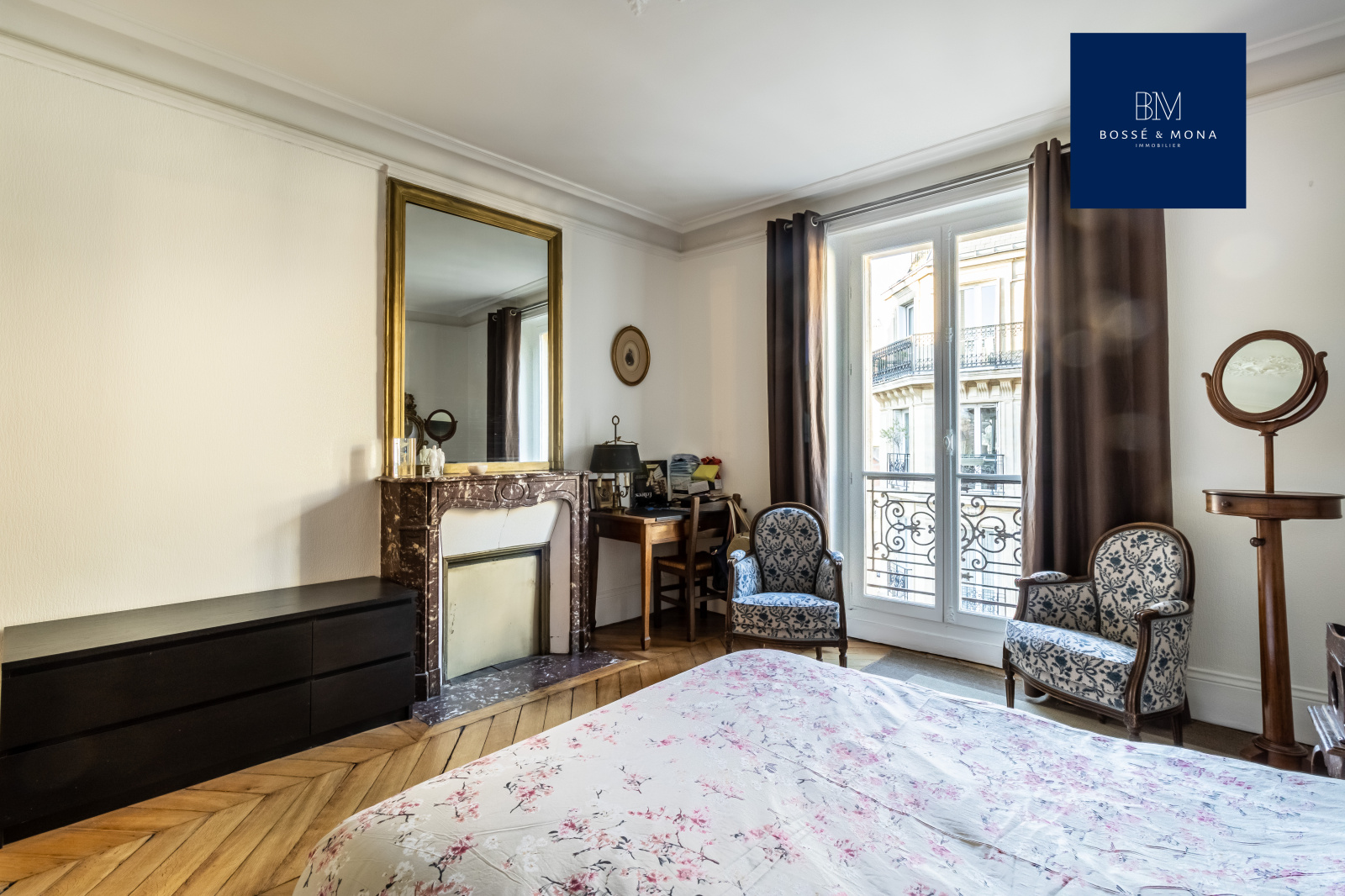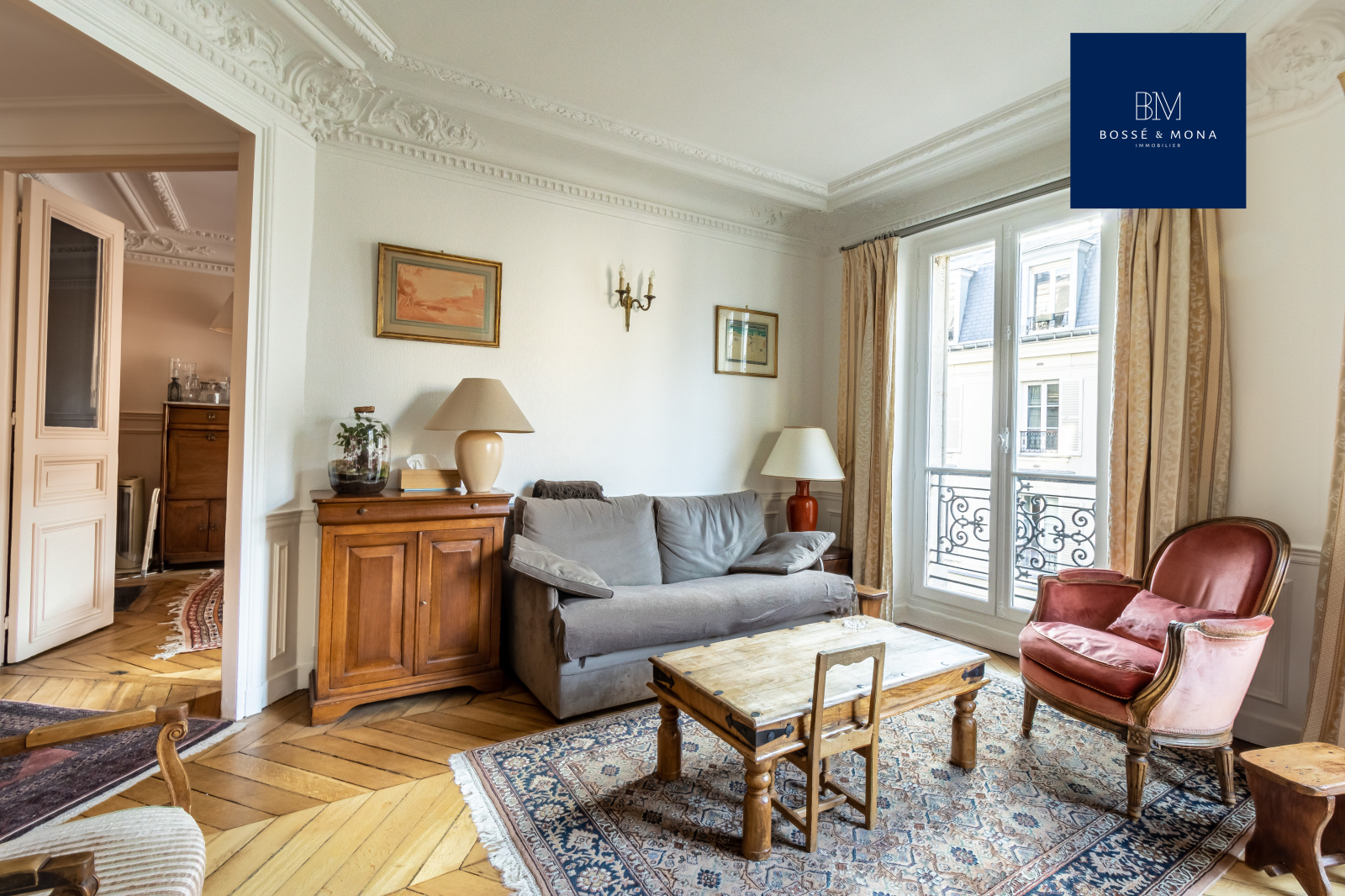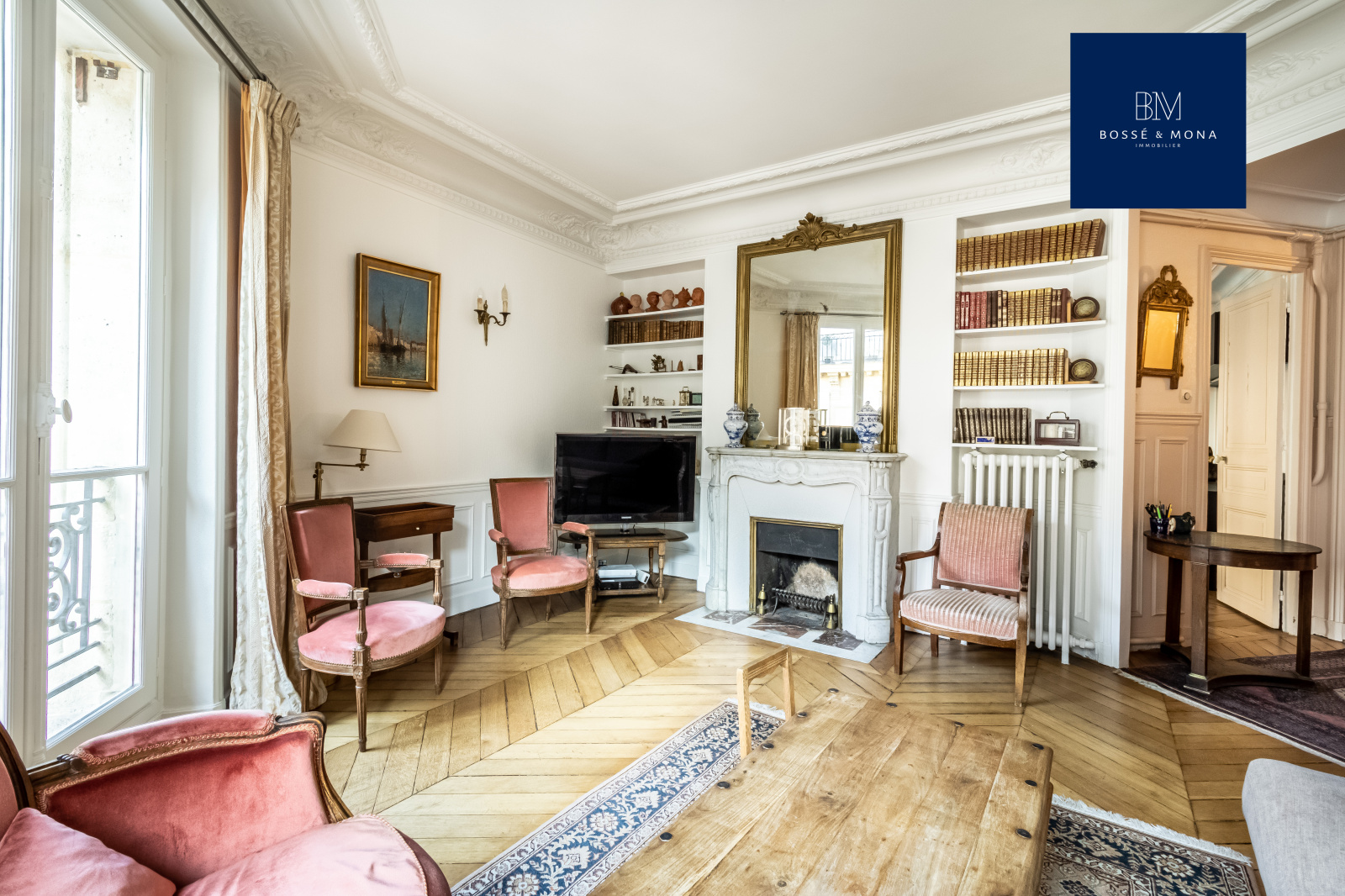Bossé & Mona immobilier, vous propose à la vente cet appartement de 91m2 (89m2 carrez), situé dans un bel immeuble d'angle de 1860, à 700m de la place des Ternes.