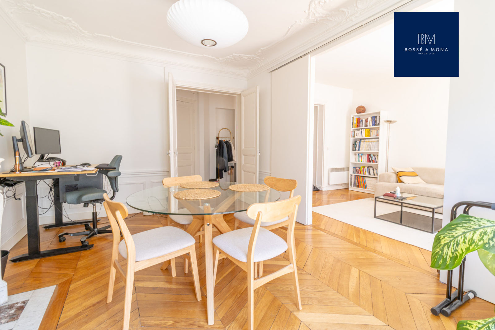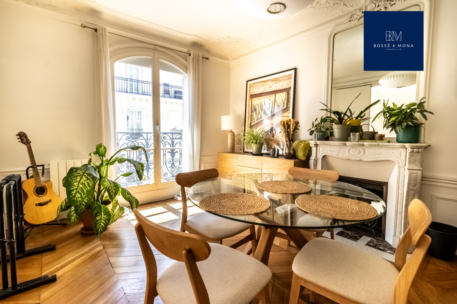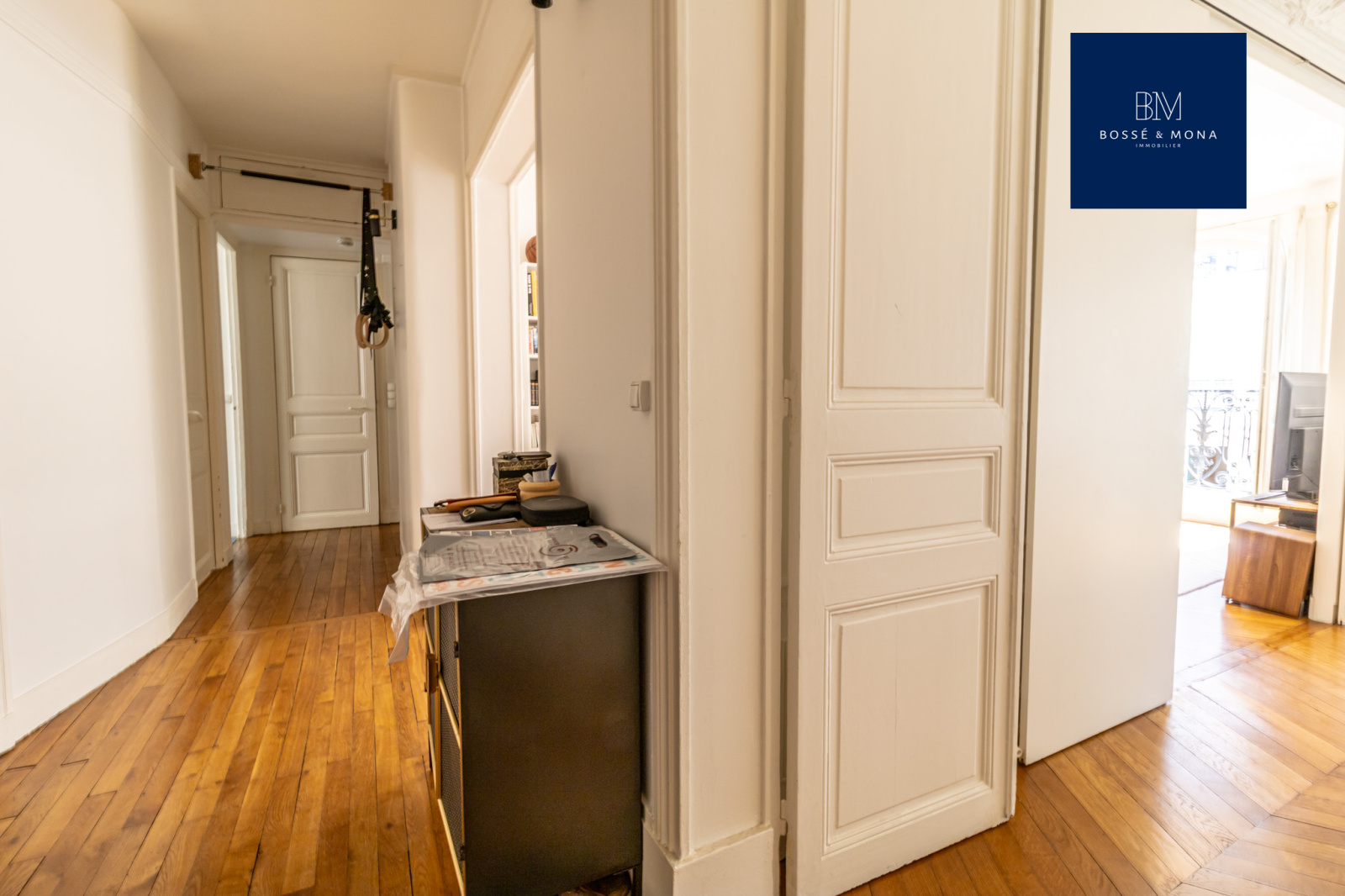 L’appartement dispose de parquet, de moulures, de cheminées, de fenêtres en double vitrage, d’une hauteur sous plafond de 2,80 m et de nombreux rangements.
