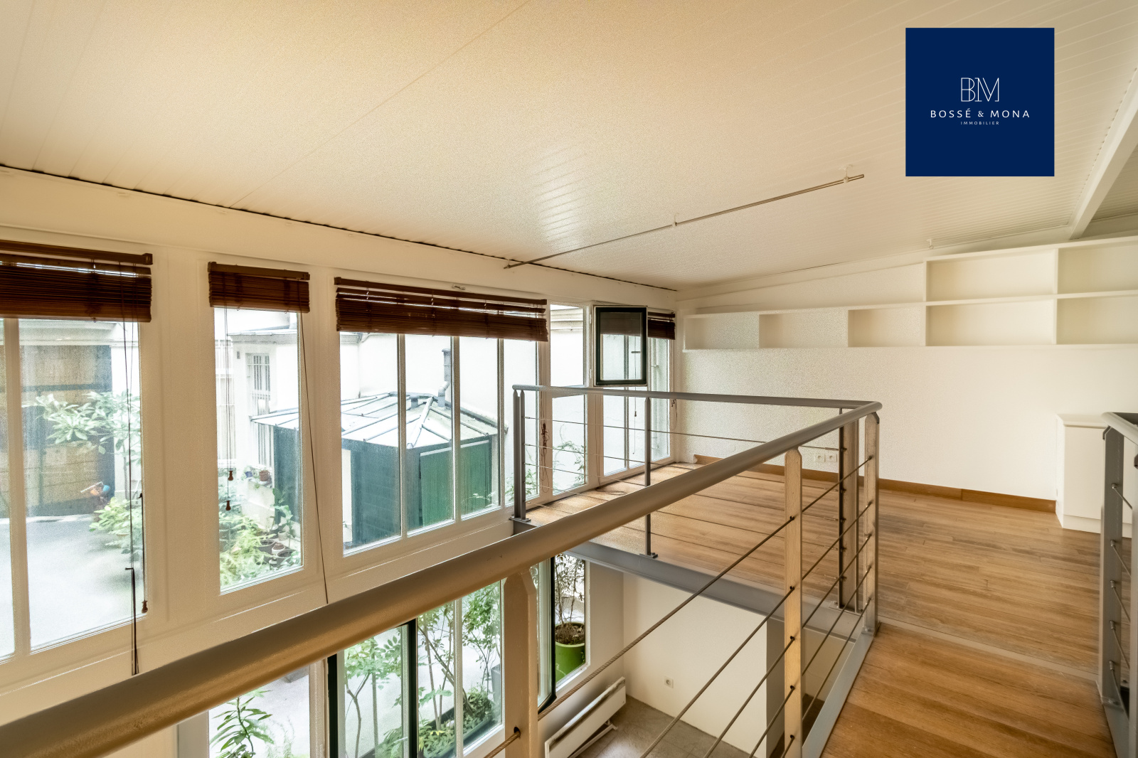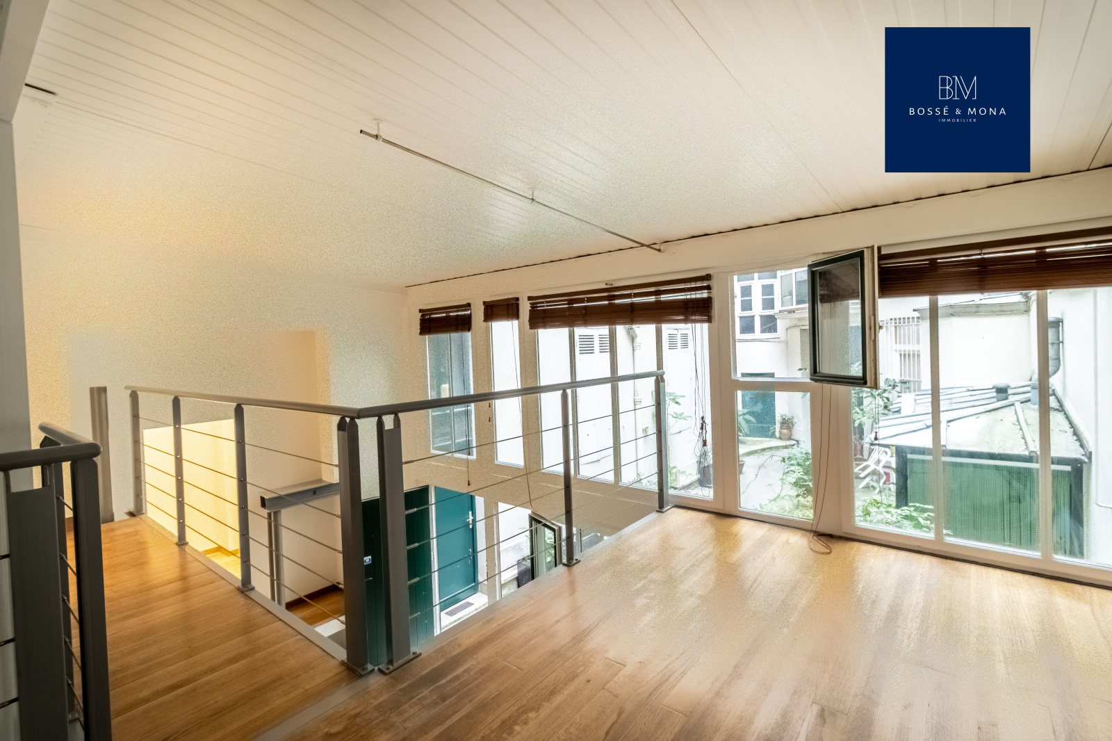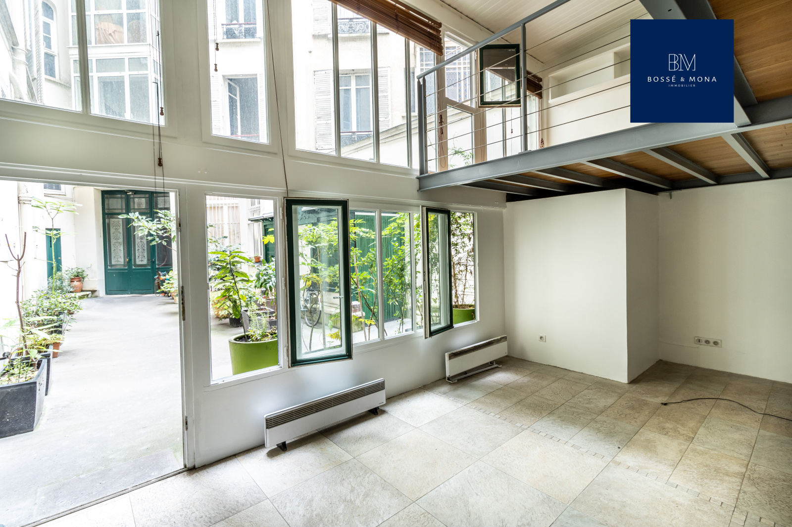 Ce bien, au calme, en fond de cour d'un bel immeuble ancien avec gardienne, se compose d'un séjour de 21m2 avec une hauteur sous plafond de 4 mètres, d'une mezzanine de 15m2, d'un bureau de 6m2 ouvrable sur un dressing de 6m2, d'une cuisine, d'une salle de bains avec douche et baignoire, et d'un WC séparé.