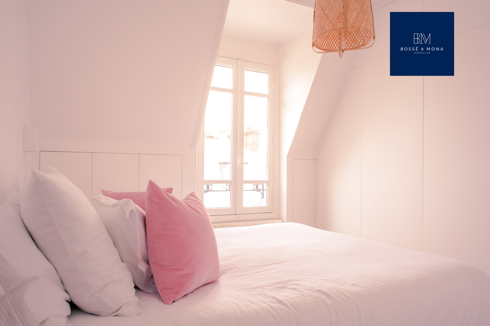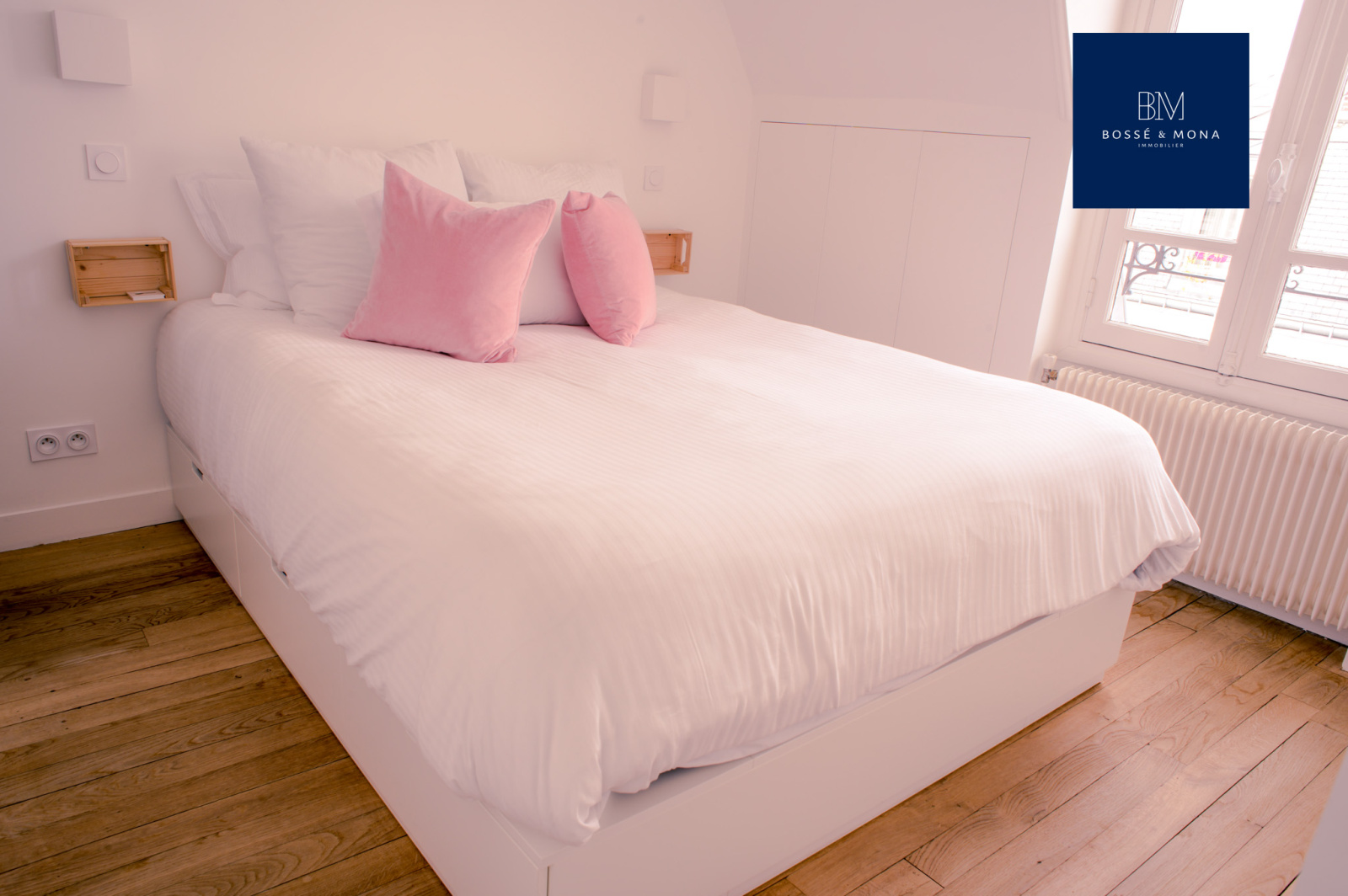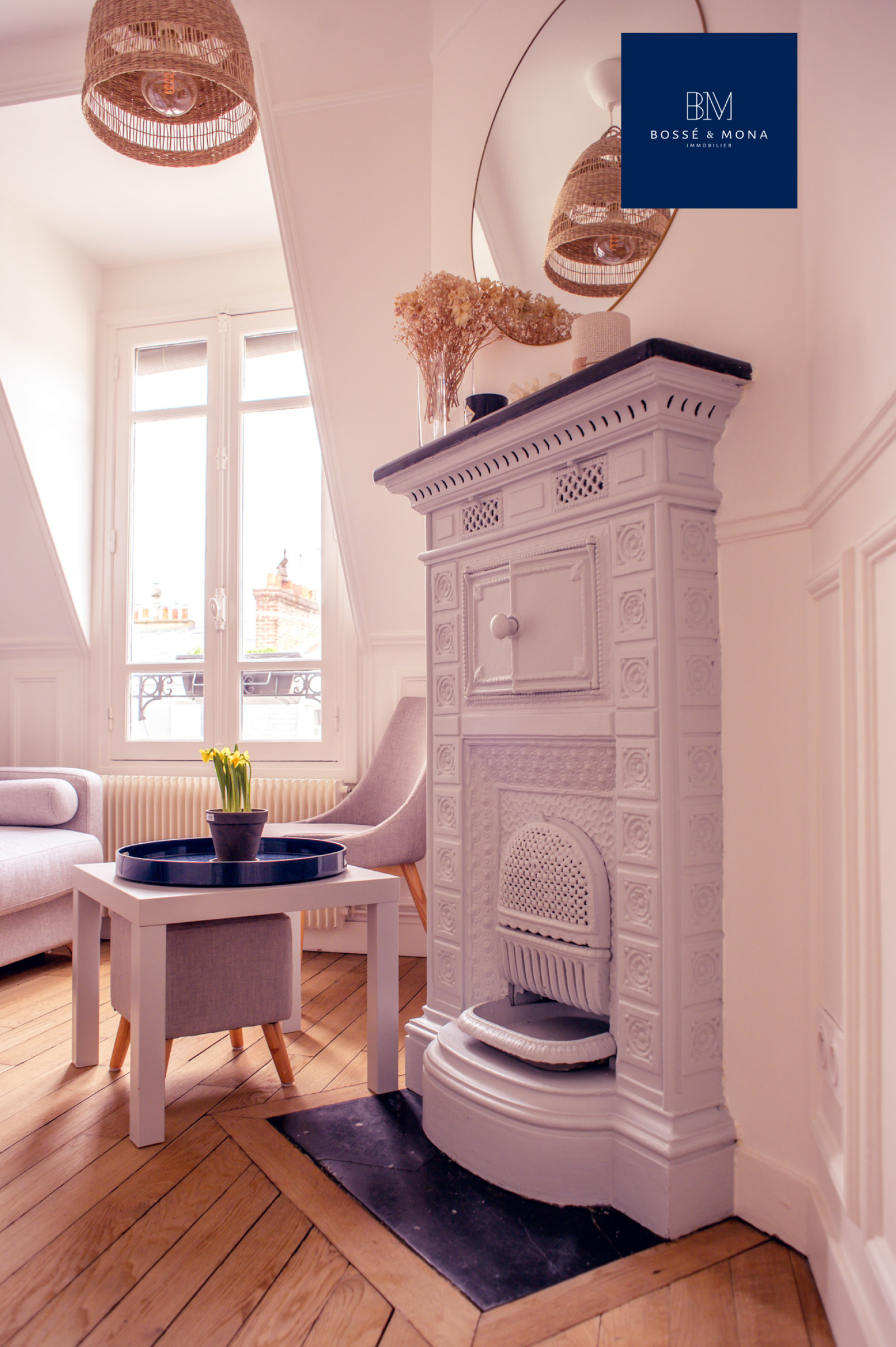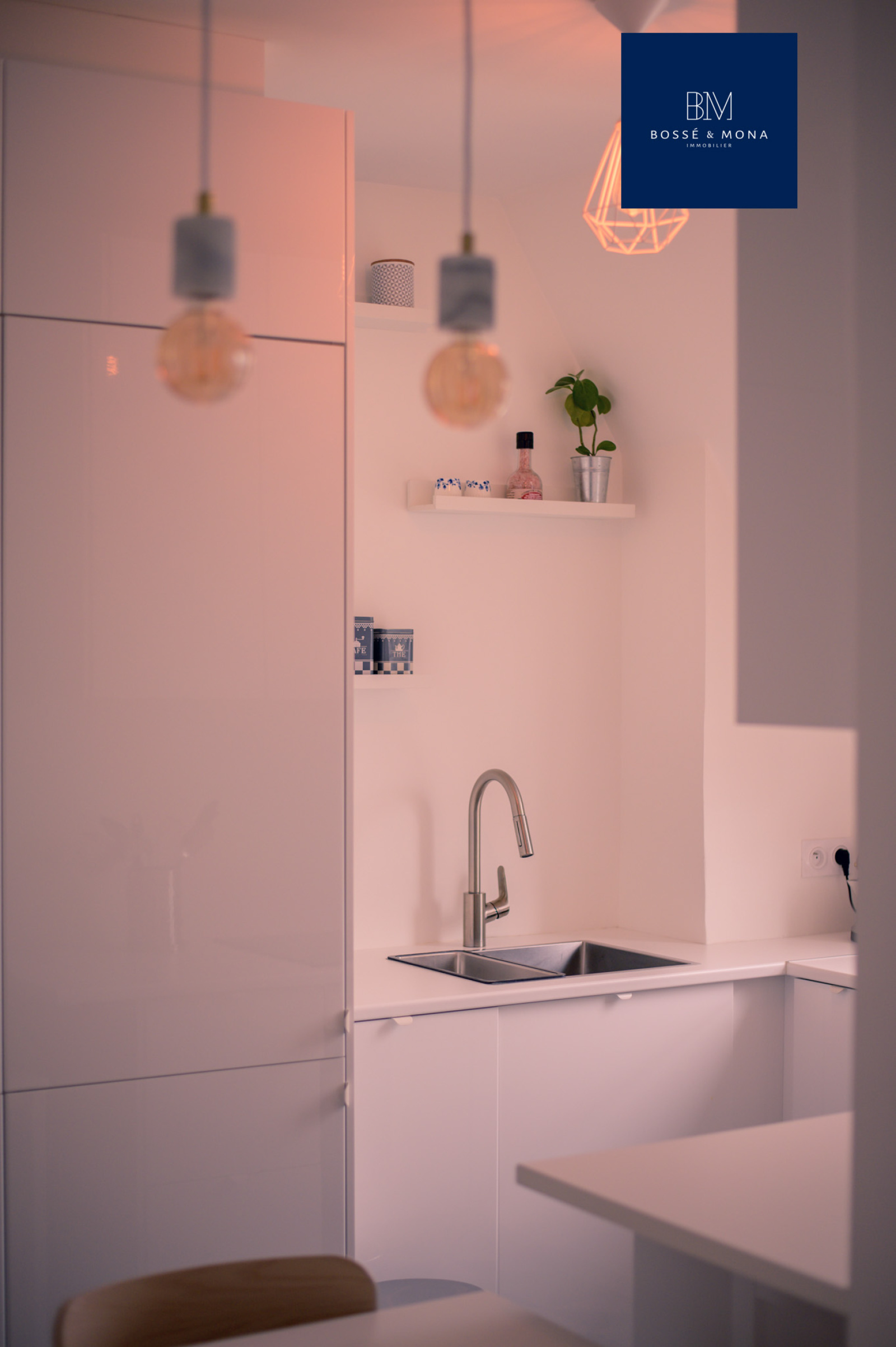 Refait à neuf par architecte en 2020, il est composé d’une cuisine entièrement équipée avec électroménager de qualité, semi-ouverte sur un séjour lumineux (21m2), d’une chambre (lit 160x200) avec salle de douche attenante avec fenêtre, d’un wc indépendant avec fenêtre. Espace optimisé par de nombreux rangements intégrés (placards, penderies et bibliothèque sur mesure) préservant le charme de l’haussmannien (hauteur sous plafond, moulures, poêle prussien, parquet plein chêne).