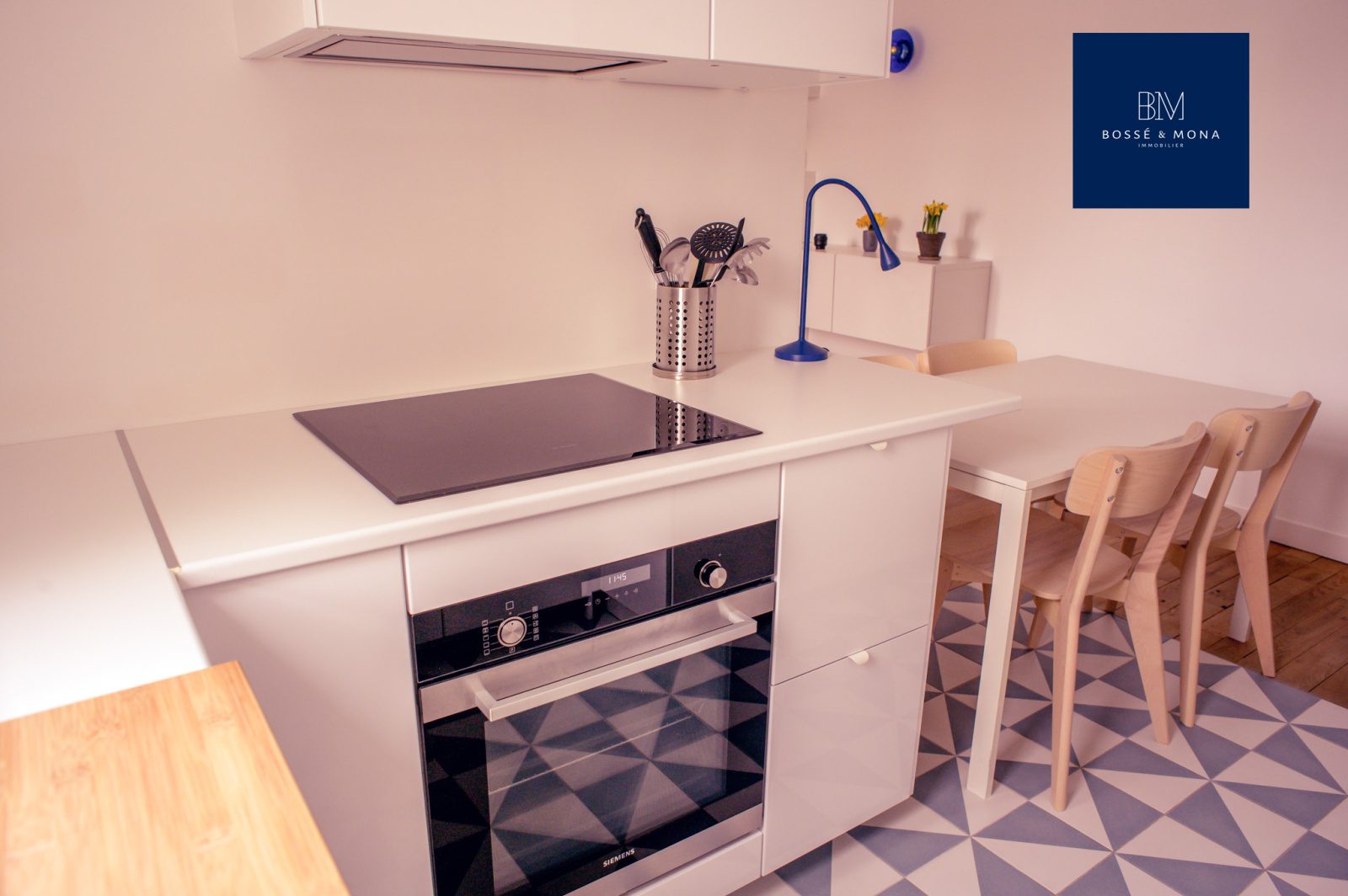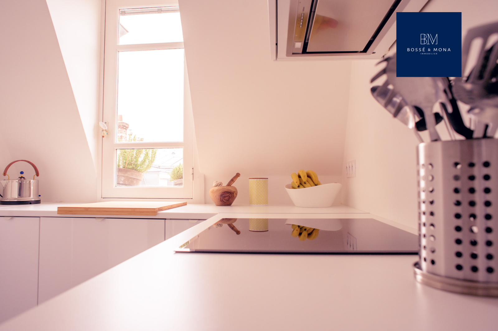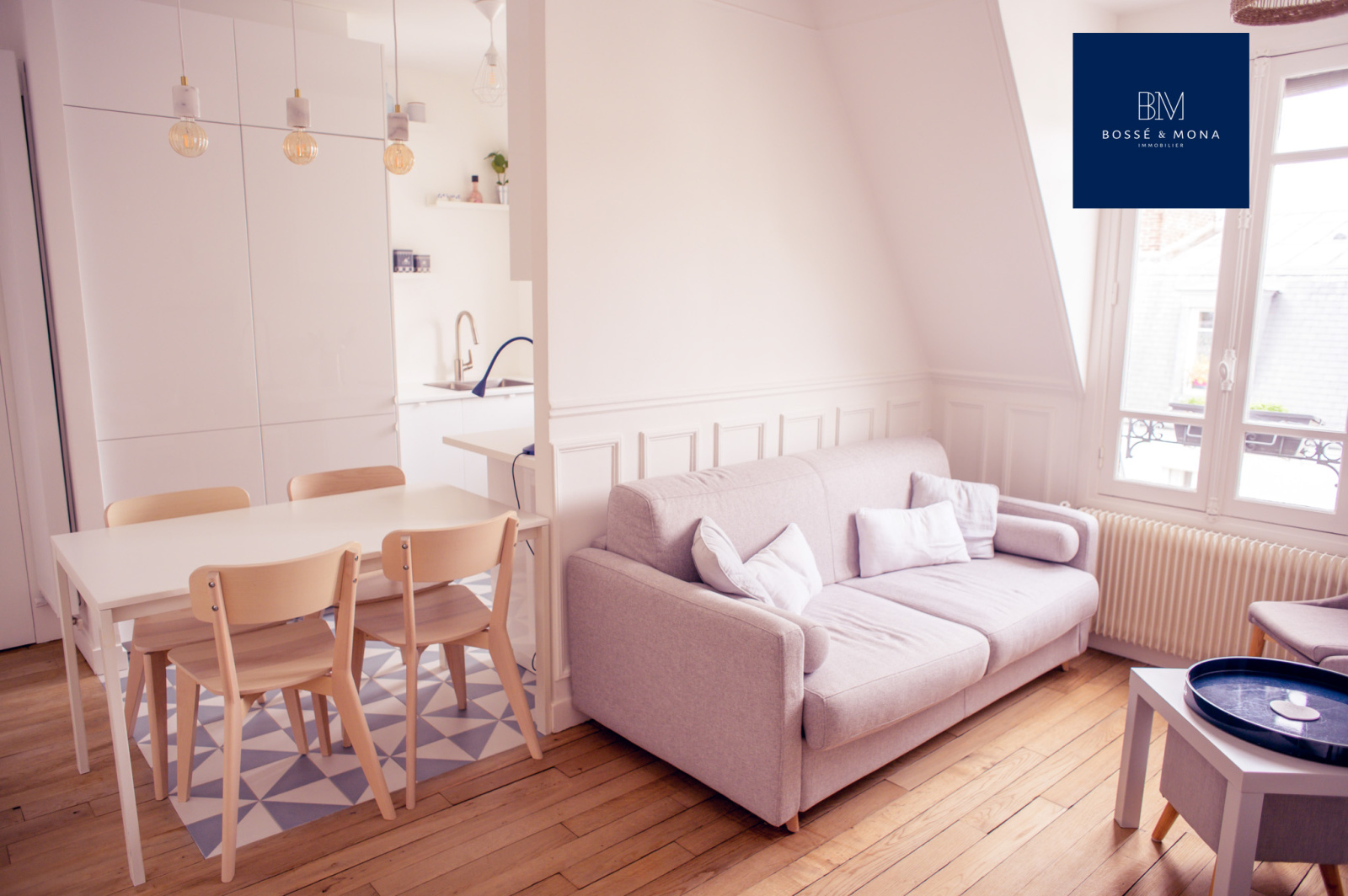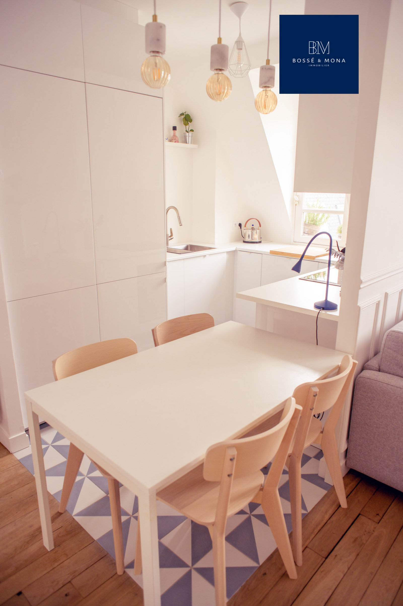 Refait à neuf par architecte en 2020, il est composé d’une cuisine entièrement équipée avec électroménager de qualité, semi-ouverte sur un séjour lumineux (21m2), d’une chambre (lit 160x200) avec salle de douche attenante avec fenêtre, d’un wc indépendant avec fenêtre. Espace optimisé par de nombreux rangements intégrés (placards, penderies et bibliothèque sur mesure) préservant le charme de l’haussmannien (hauteur sous plafond, moulures, poêle prussien, parquet plein chêne).