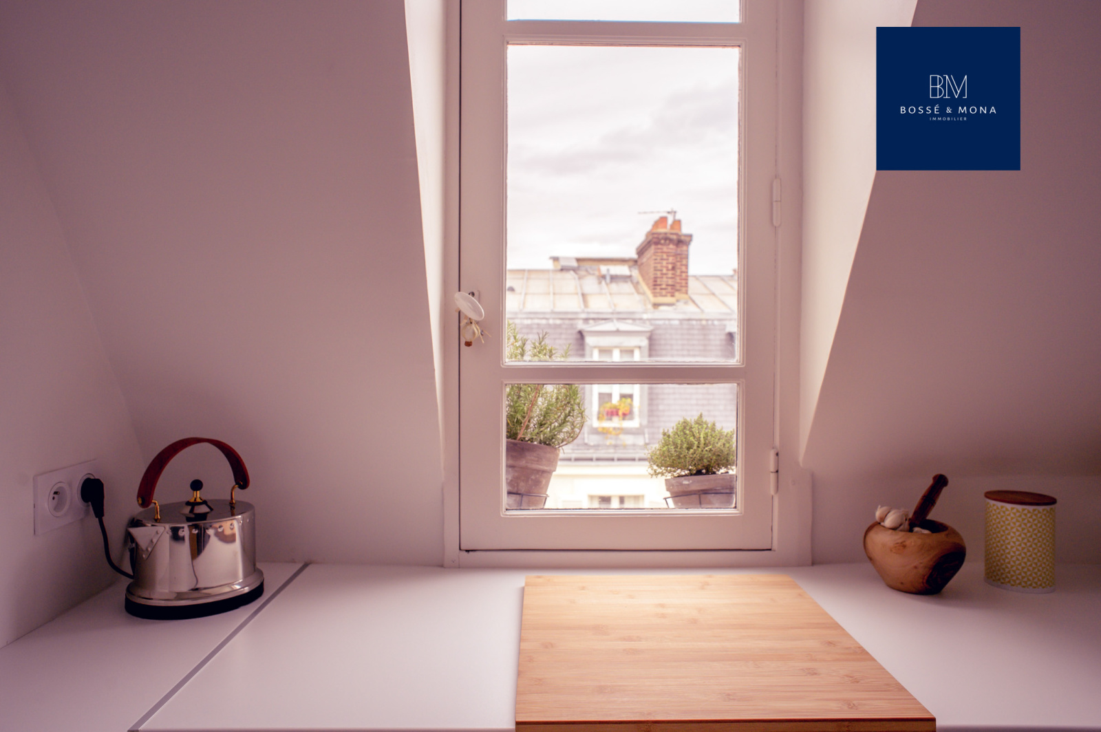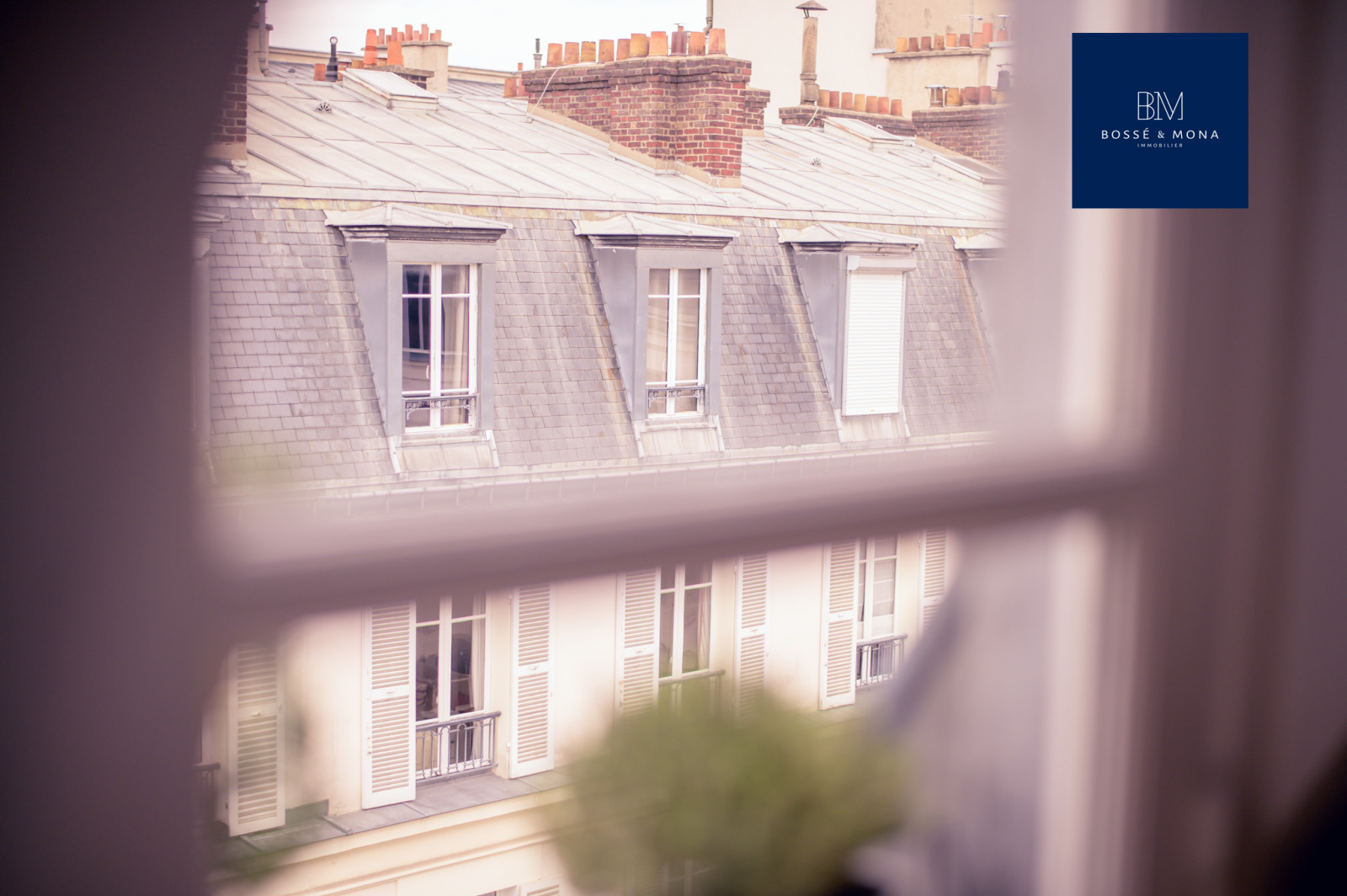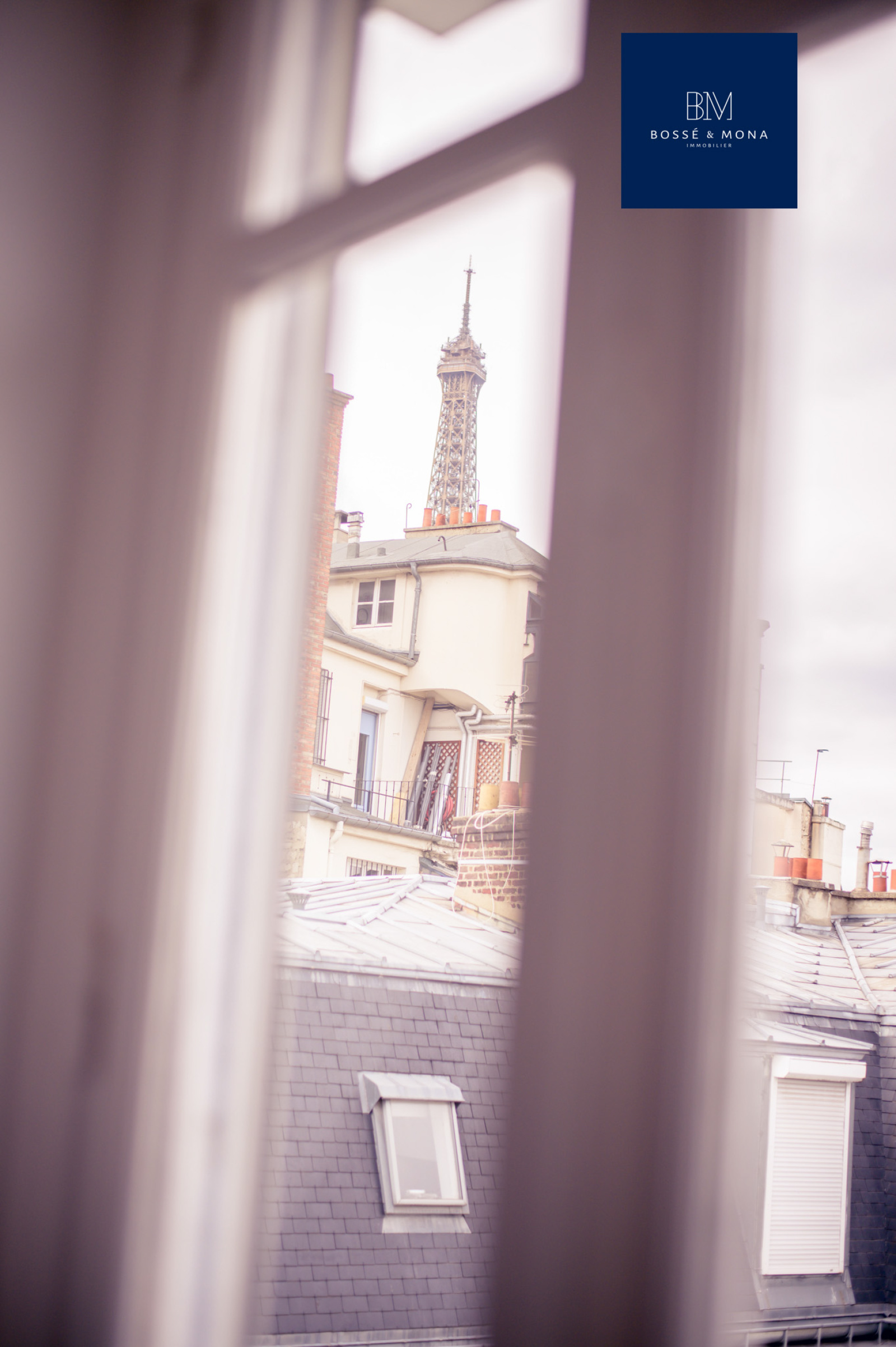 Bossé & Mona Immobilier, vous propose à la vente, situé rue du Champ de Mars, dans le très prisé VIIème arrondissement de Paris, à proximité du marché de la rue Cler, des Invalides et de la Seine, ce ravissant appartement de 36,44 m2 au sol (32,24 m2 Carrez) au 6ème et dernier étage par escalier, au calme absolu sur cour, offrant une vue dégagée sur les toits de Paris et la Tour Eiffel.