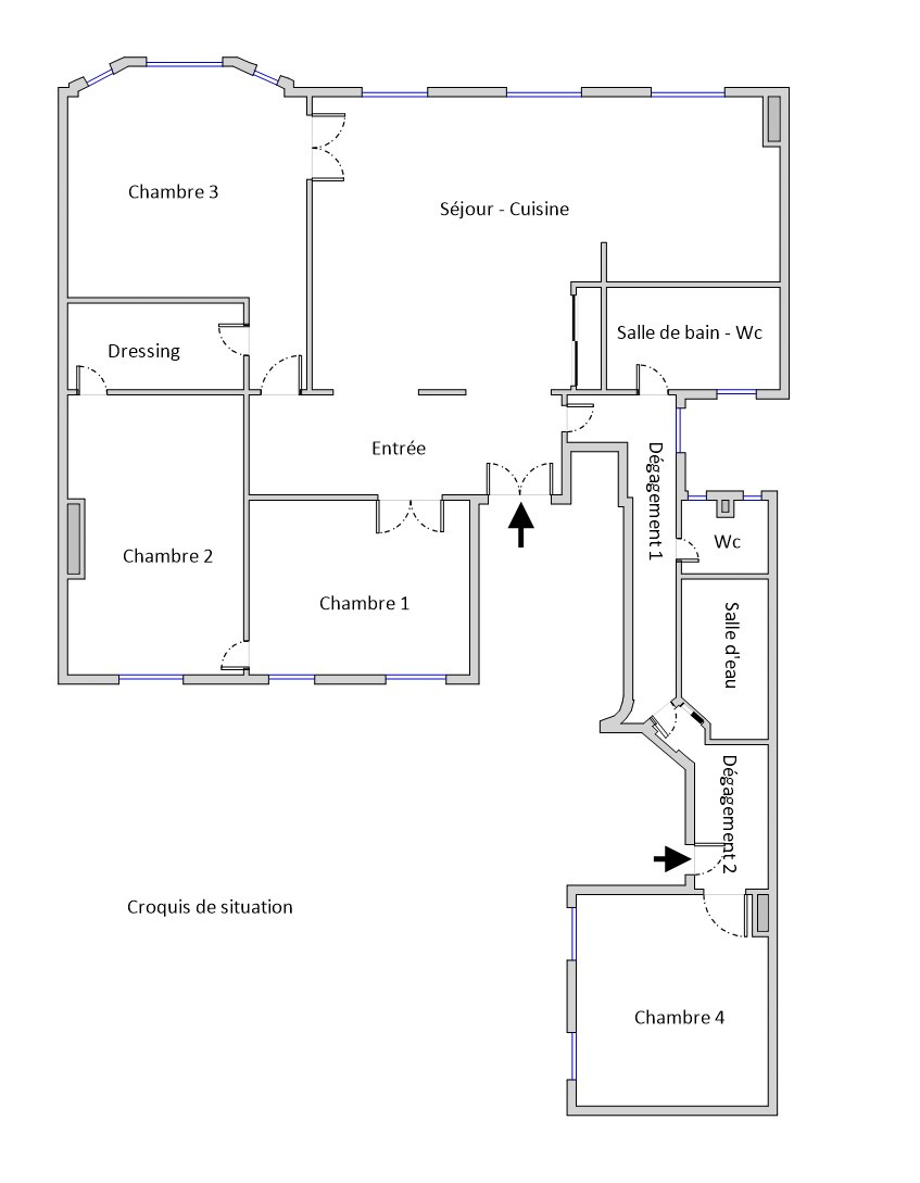 Le bien, calme et traversant, est situé au 2ème étage avec ascenseur. Il se compose d'une entrée, d'un double séjour avec cuisine ouverte de 44m2, de 4 chambres de 15m2, 16m2, 19m2 et 22m2, d'une salle de bains avec WC, d'une salle d'eau, d'un WC indépendant, d'une buanderie et d'un dressing.