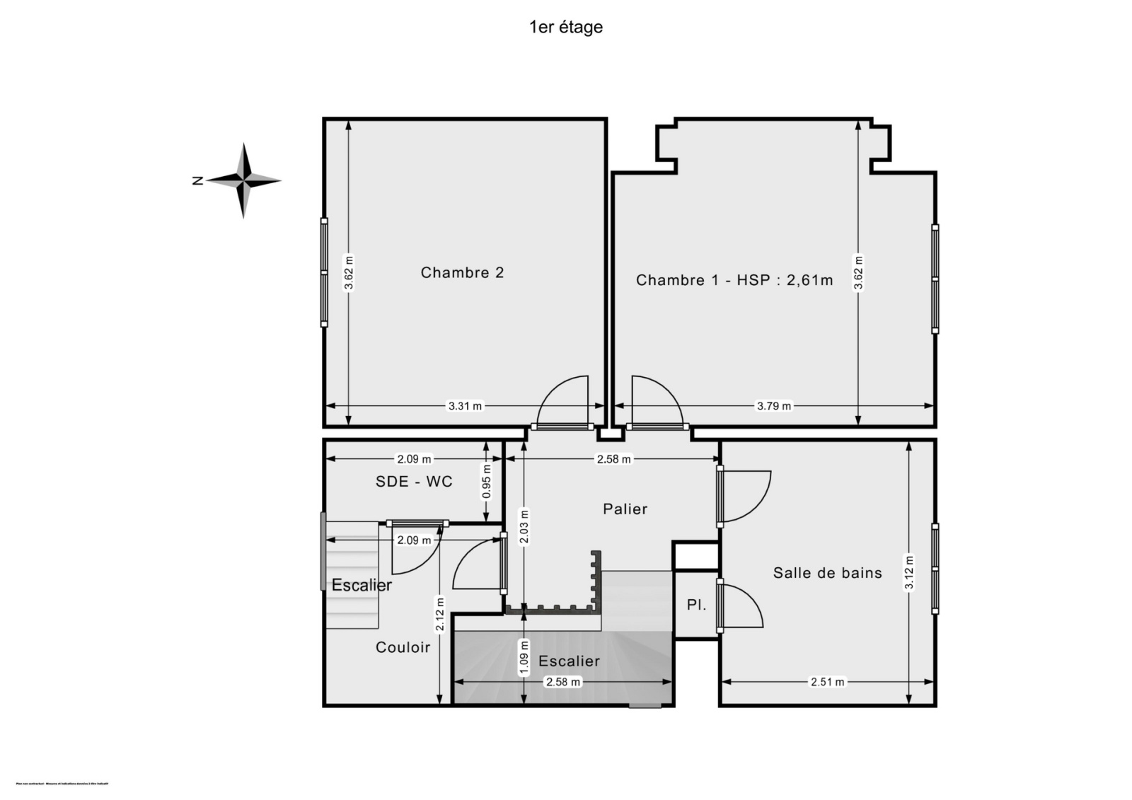 - A l'étage: de 2 chambres de 11.5m2 et 13.2m2, d'une salle de bains, et d'une salle d'eau avec WC. - Au dernier étage: de 2 chambres de 14.5m2 et 13.2m2.