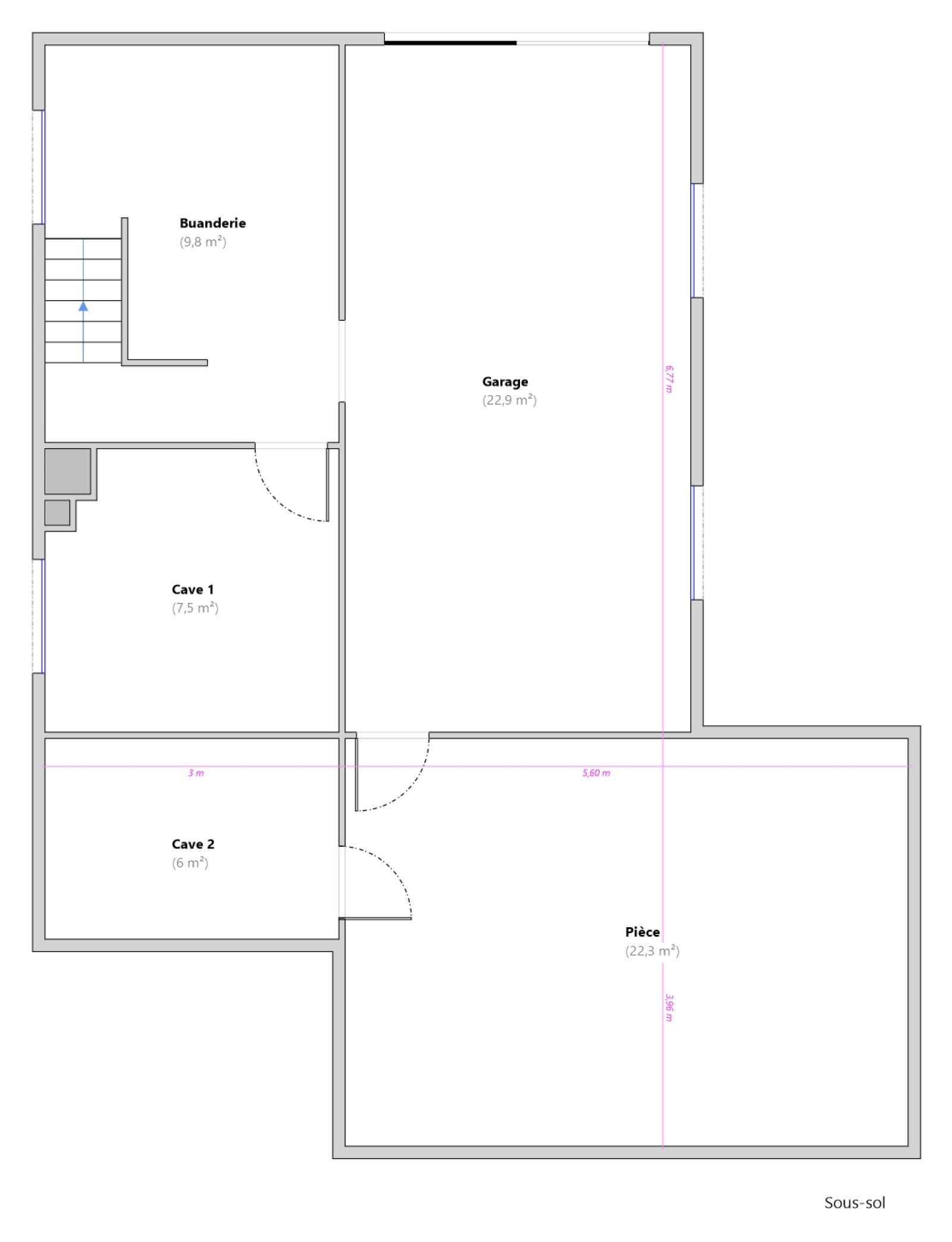 La maison dispose d'un sous-sol de 70m2 qui comprend : un garage de 22.9m2, 2 caves, une buanderie de 10m2 et une pièce pouvant faire office de salle de jeu ou salle télé de 22m2. Il y a un abris de jardin devant la maison. Au fond du jardin, un studio indépendant de 11m2 avec point d'eau peut faire office de chambre d'appoint.