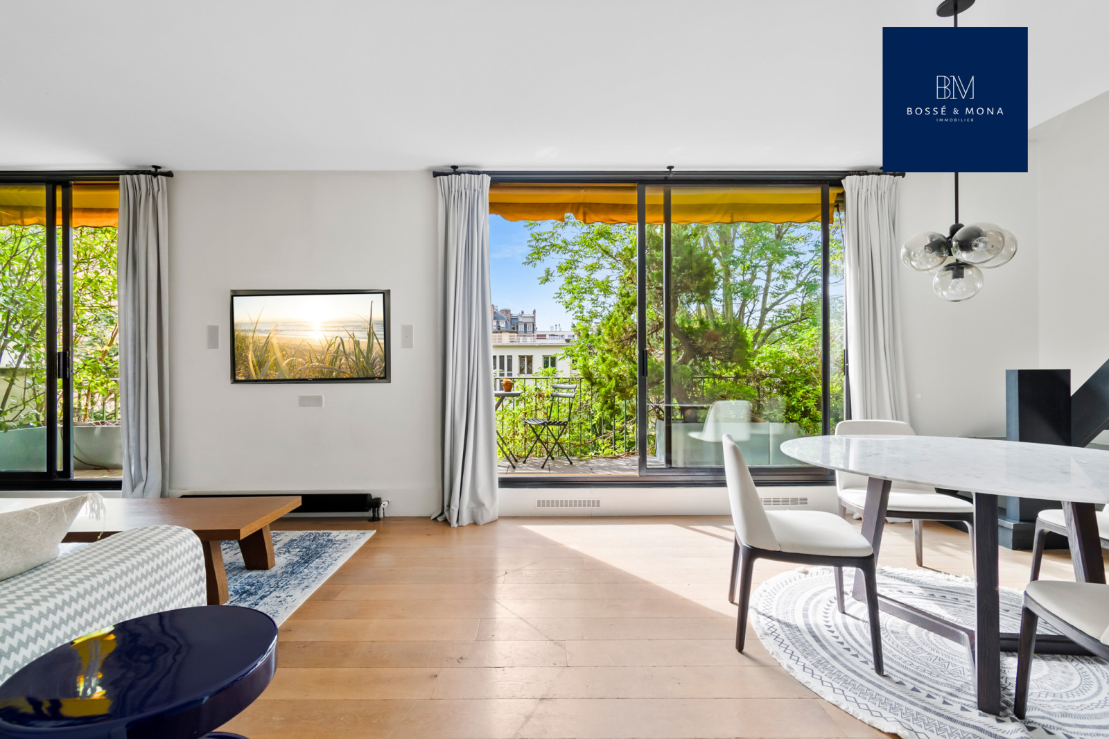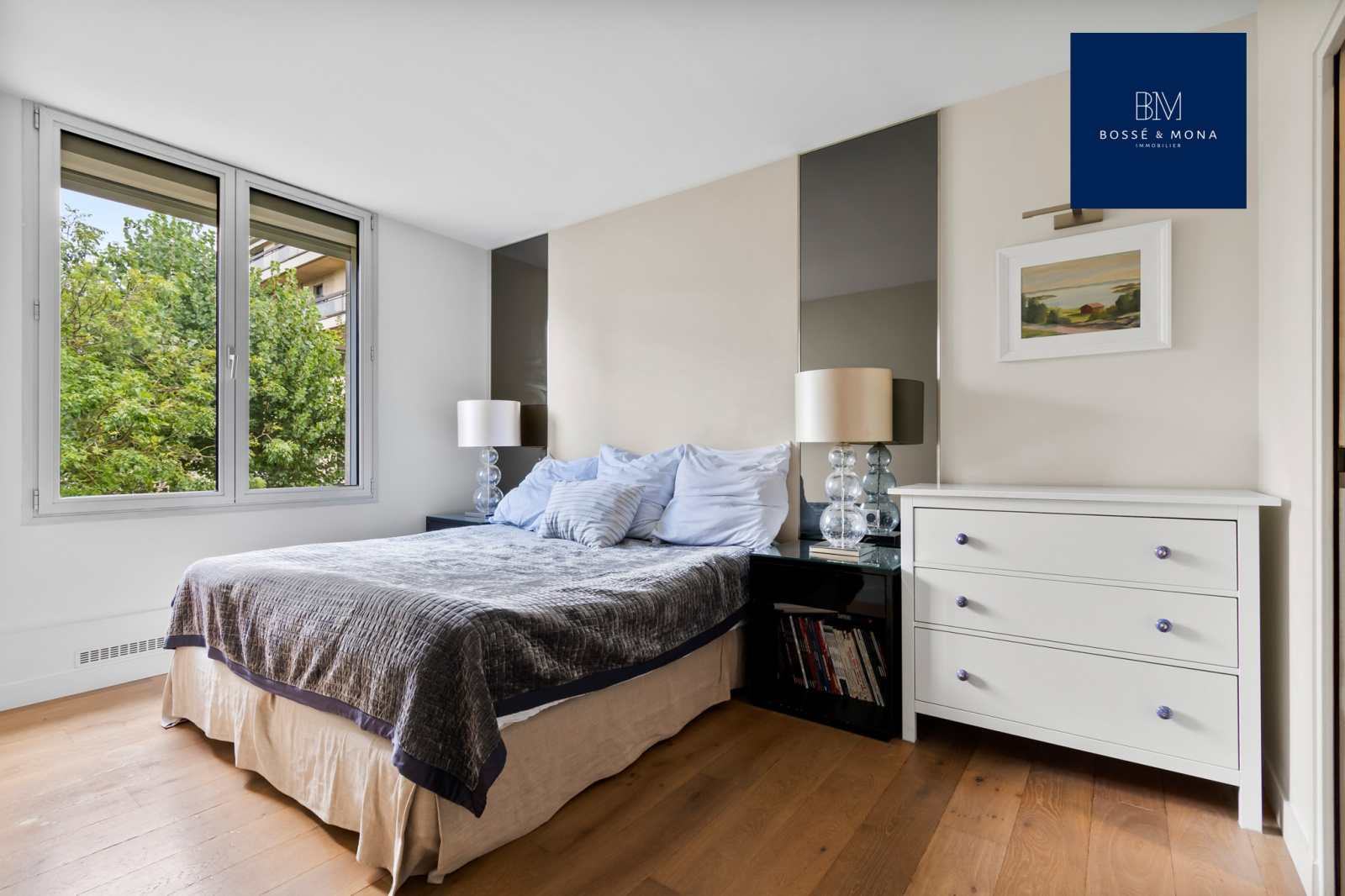 Bossé & Mona Immobilier vous propose à la vente ce penthouse de 89m2 habitables (86m2 Carrez) avec un balcon de 13m2 et un rooftop de 69m2, en face du Bois de Boulogne, dans le quartier Saint-James.