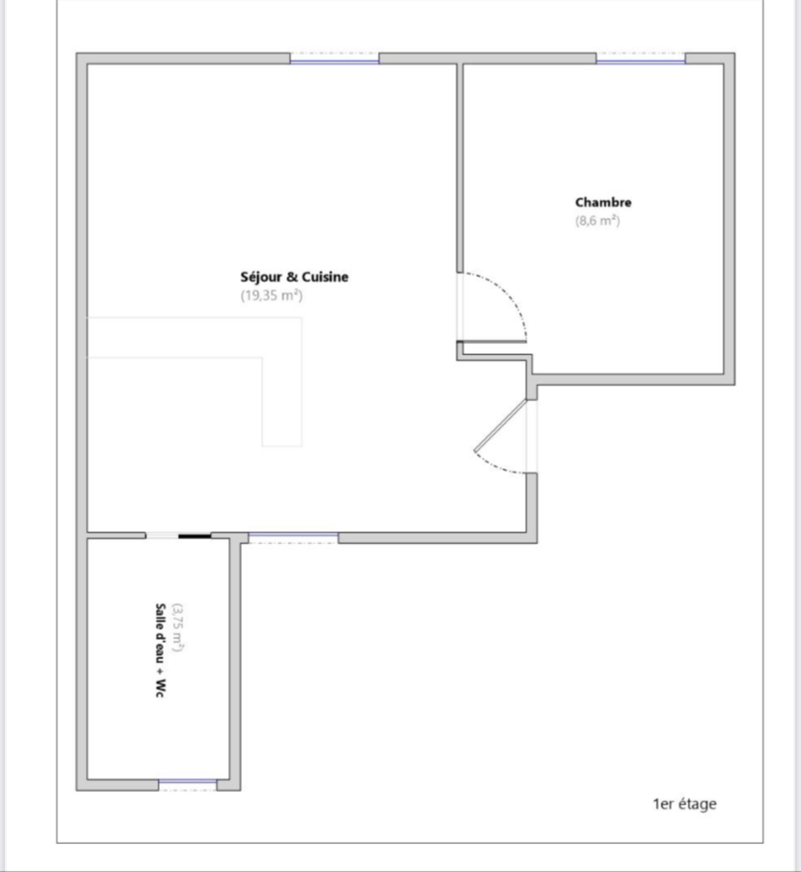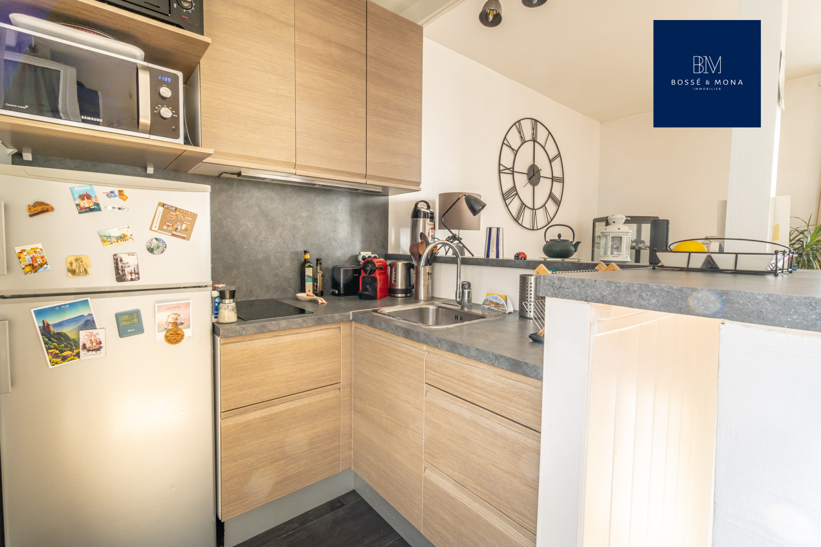 Ce bien, au 1er étage sans ascenseur, lumineux et traversant, se compose d'une cuisine ouverte sur le séjour de 19m2, d'une chambre de 9m2 et d'une salle d'eau avec WC.