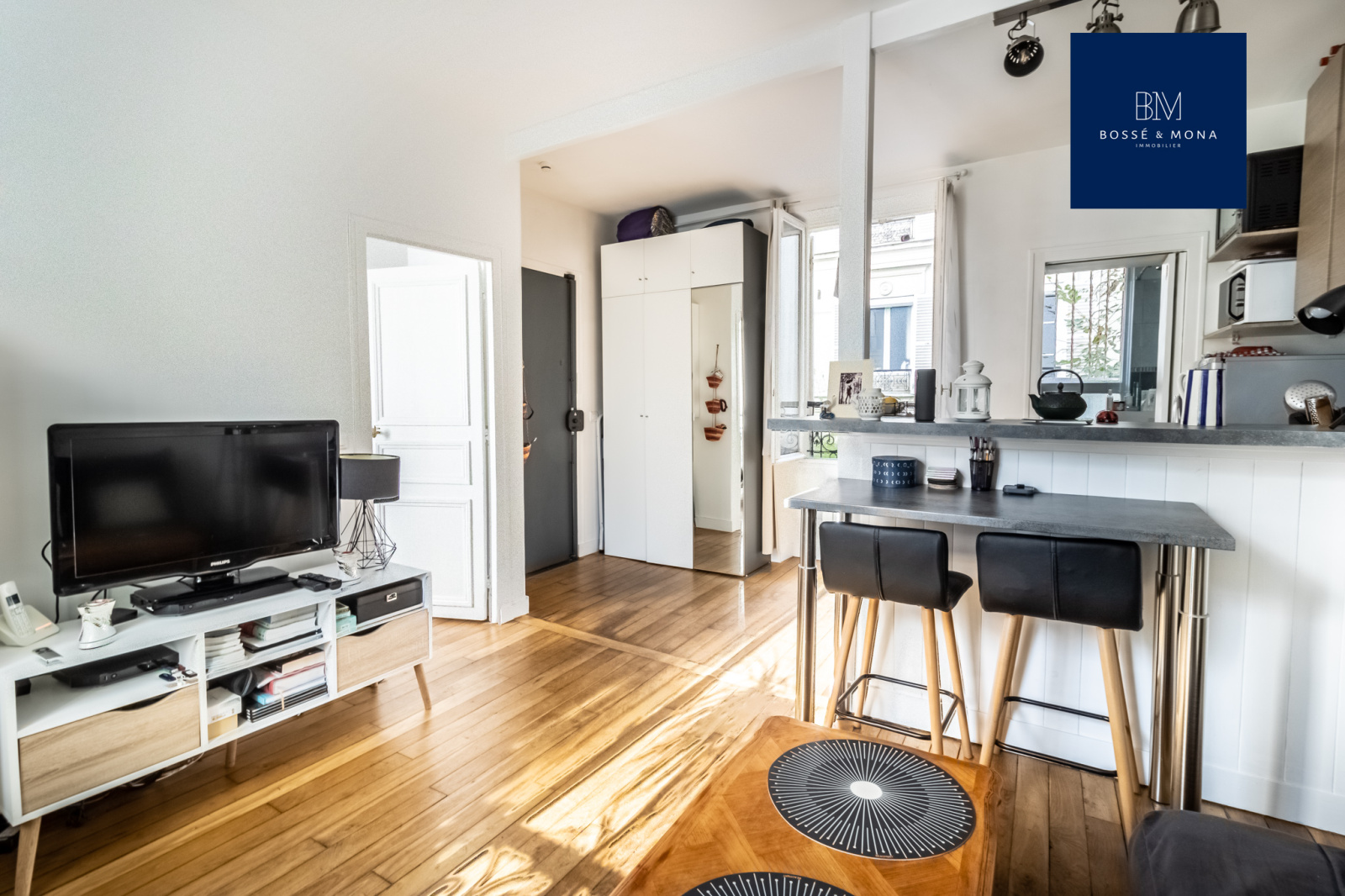 Bossé & Mona Immobilier, vous propose à la vente cet appartement de 32.75m2 (31.70m2 Carrez), dans un immeuble ancien, rue Henri Barbusse, à 150m du métro Louise Michel.