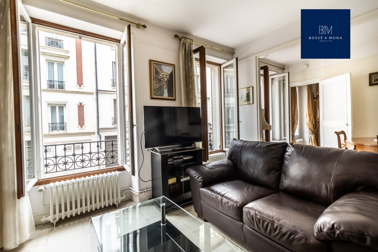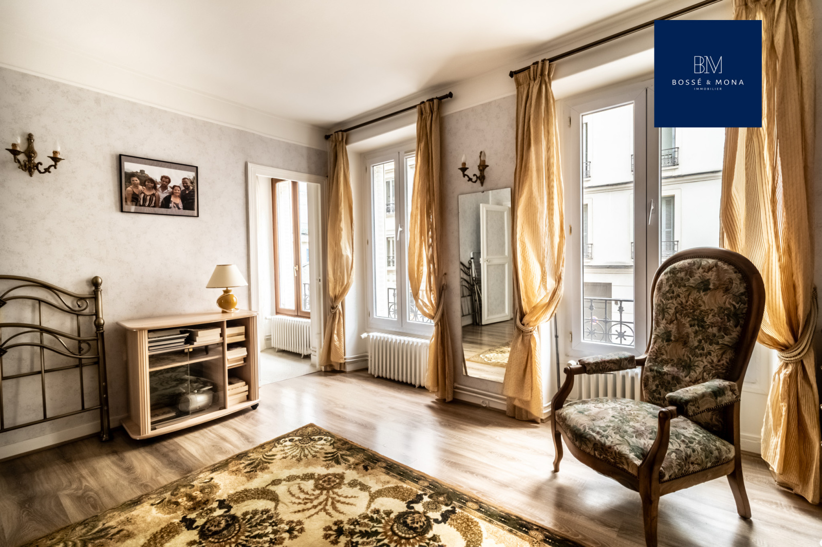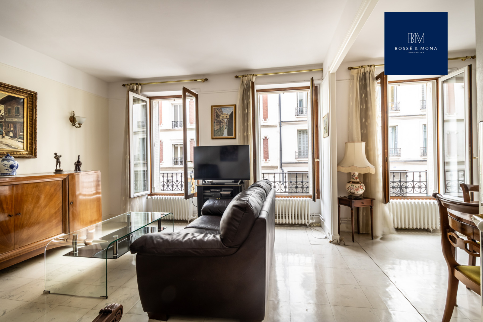 Bossé & Mona Immobilier, vous propose à la vente cet appartement traversant de 69m2, au 1er étage sans ascenseur d'un immmeuble ancien, à 500m du métro Louise Michel et de la Mairie.