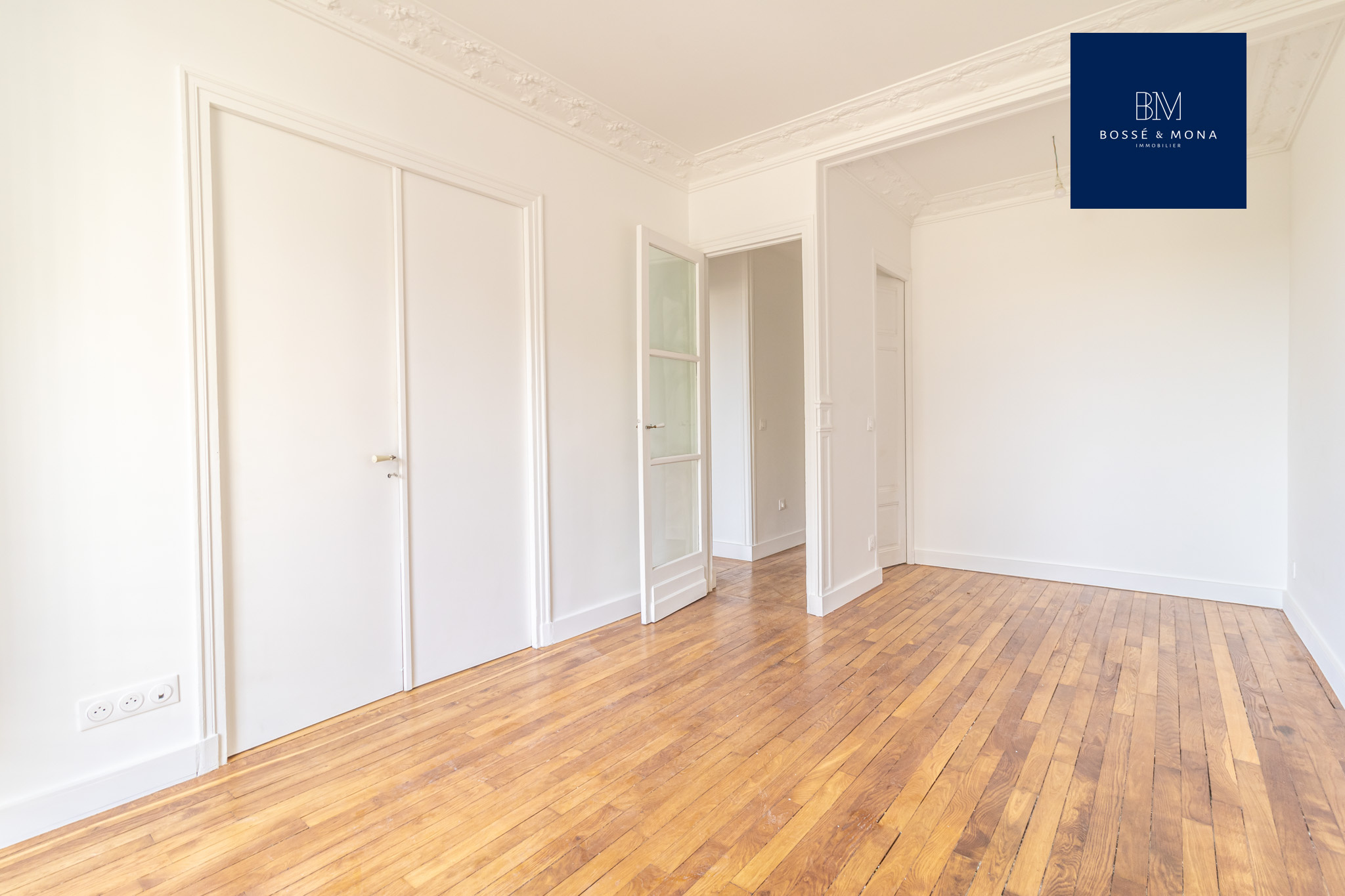L'appartement dispose de parquet, de moulures, de fenêtres en double vitrage et d'un DPE D.