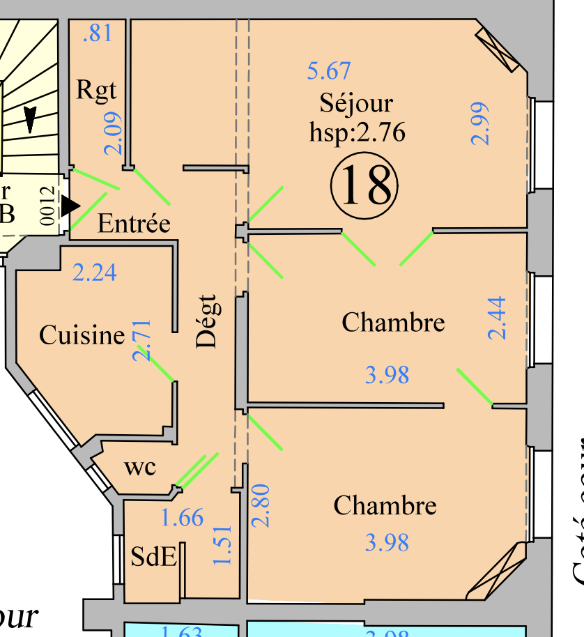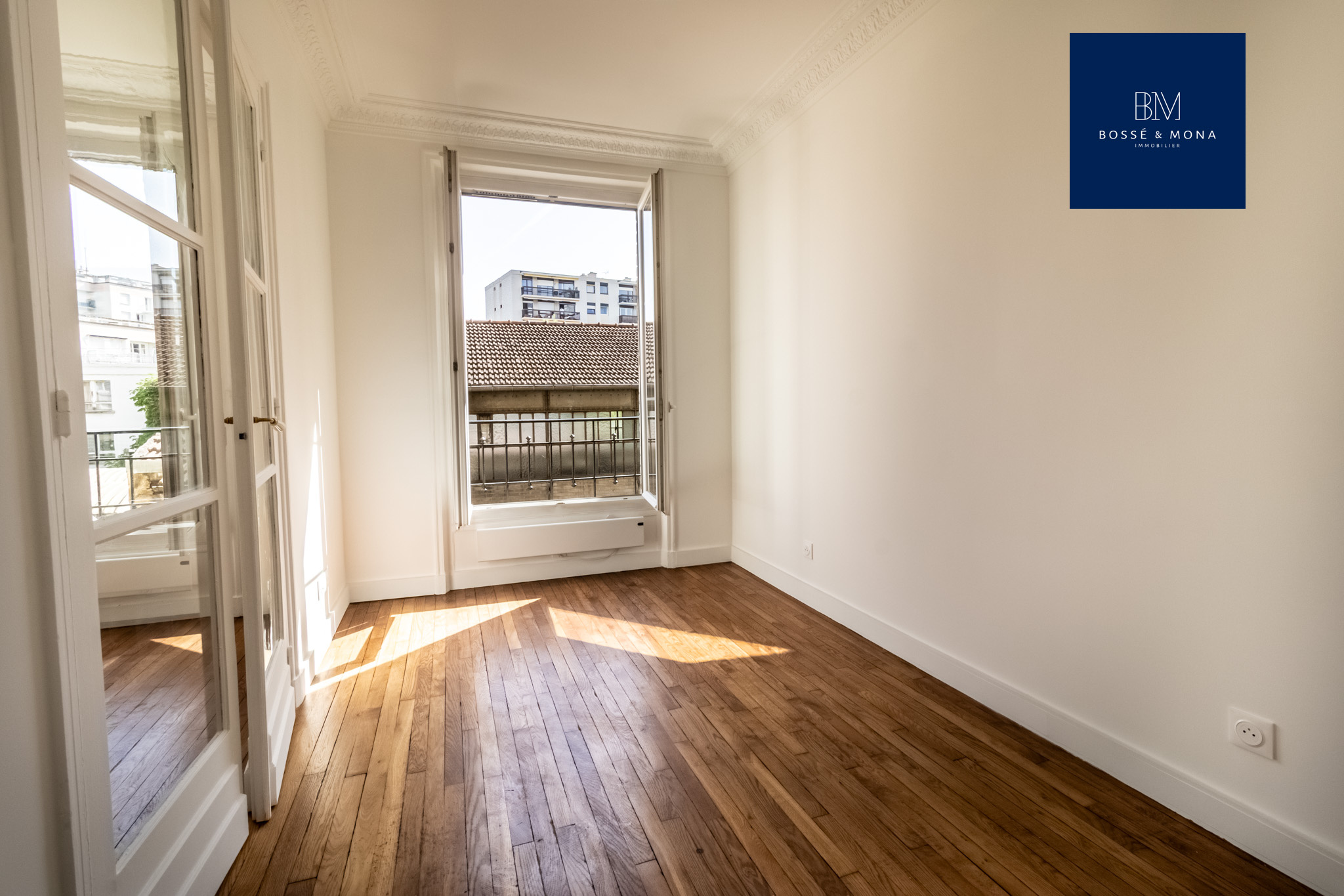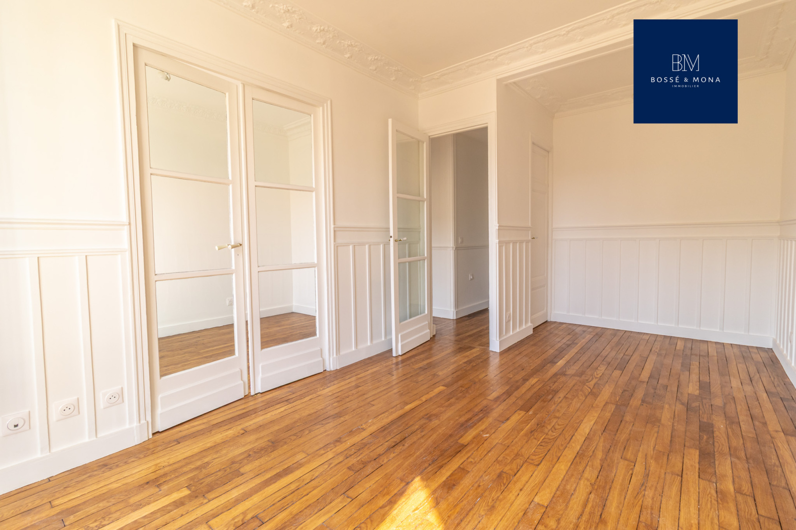 L'appartement dispose de parquet, de moulures, de fenêtres en double vitrage et d'un DPE D.