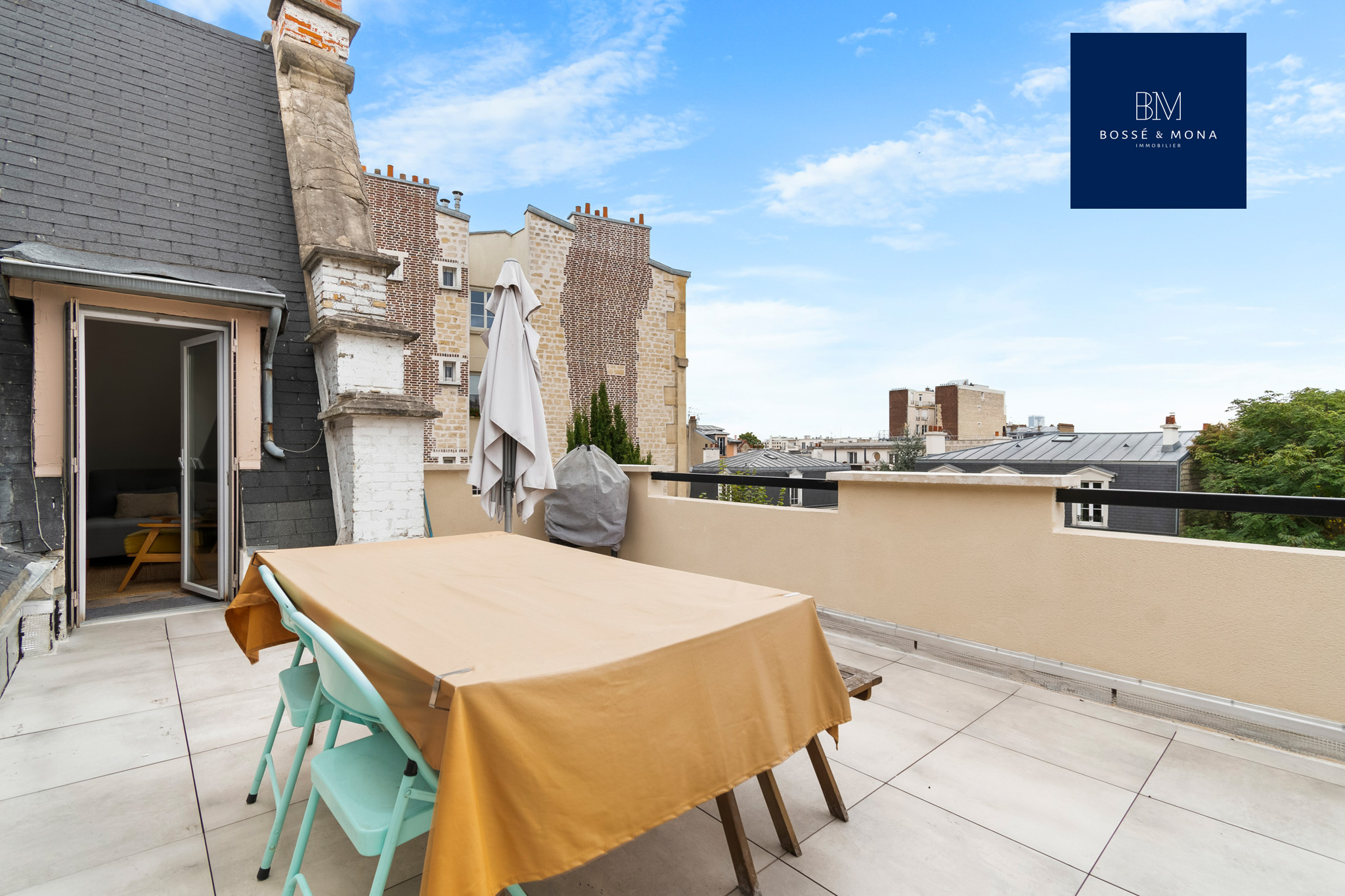 Bossé & Mona Immobilier vous propose à la vente cet appartement de 80m2 habitables / 73m2 Carrez, clair, calme et en parfait état, avec terrasse de 28m2, à 300m de la gare d'Asnières.