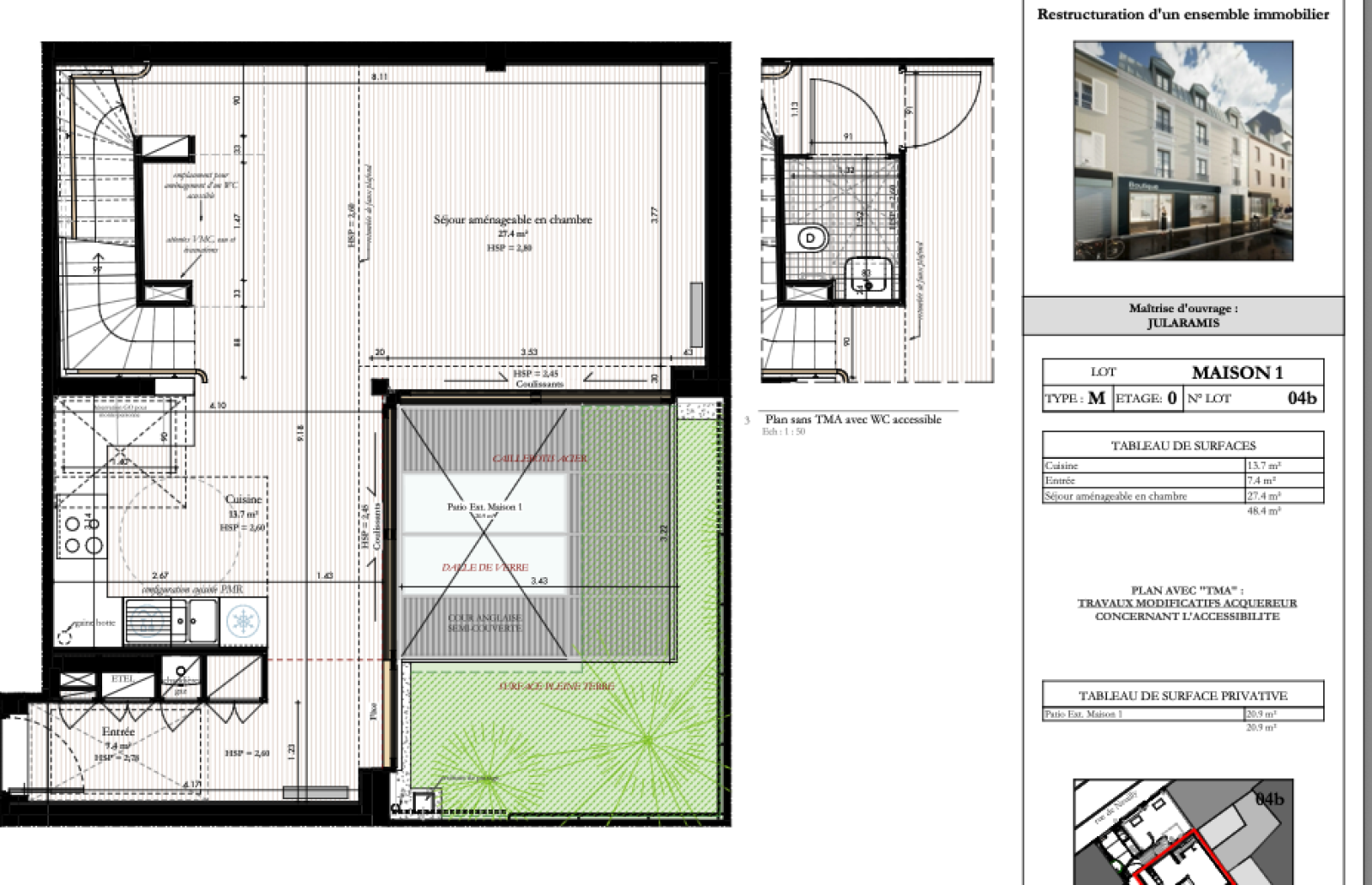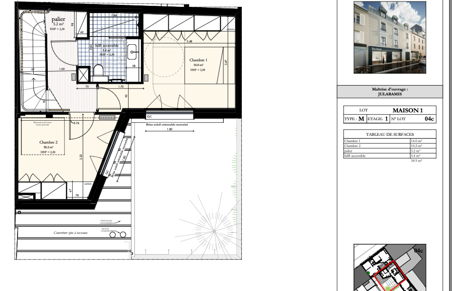 - Au 2ème étage : d'une suite parentale de 31m2 avec dressing, salle de bains et WC.
