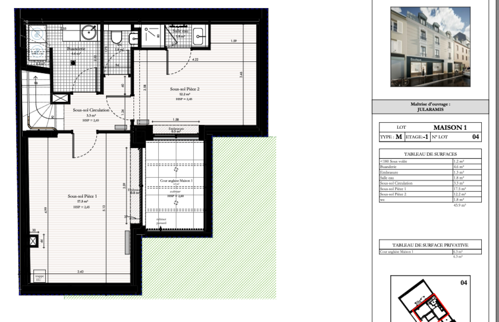 -Au sous sol: d'un espace buanderie de 4m2, de 2 pièces de 17m2 et 12m2 (chambre, bureau ou salle de jeu...) donnant accès à une cour anglaise de 6m2, et d'une salle d'eau.