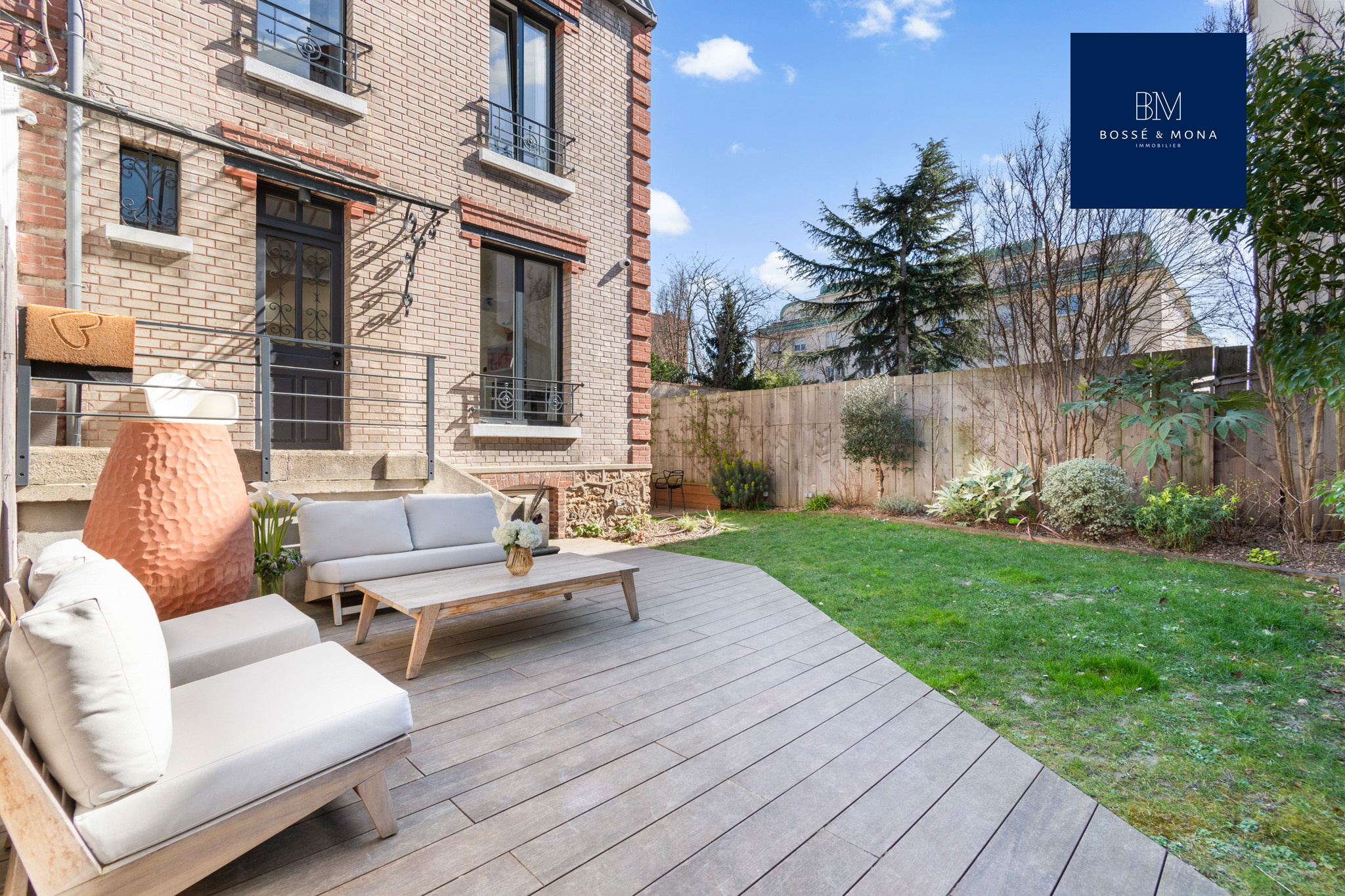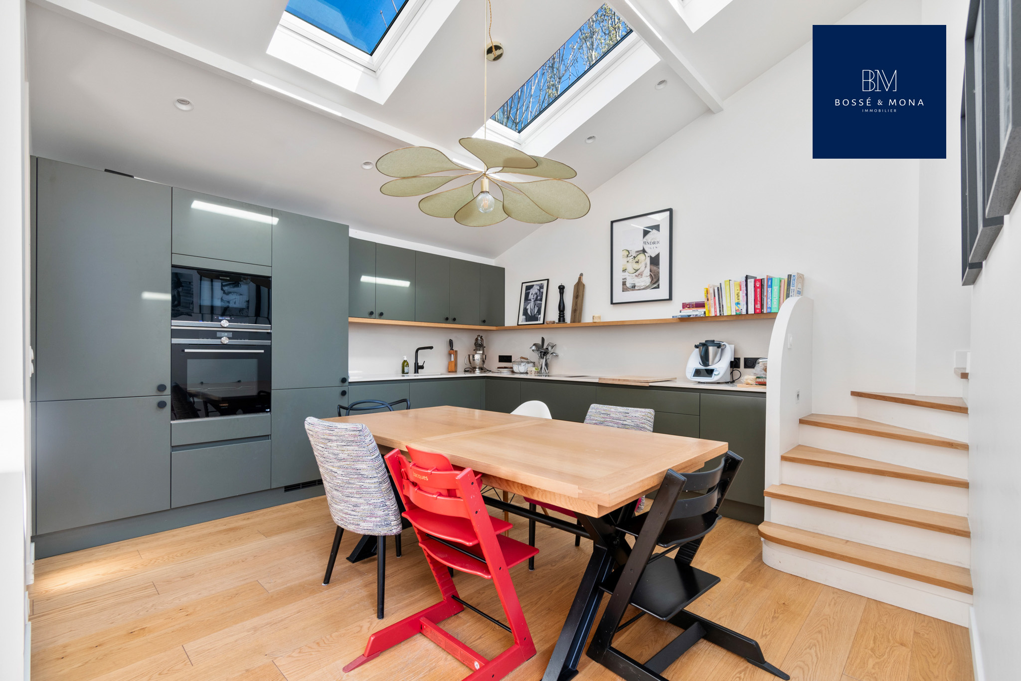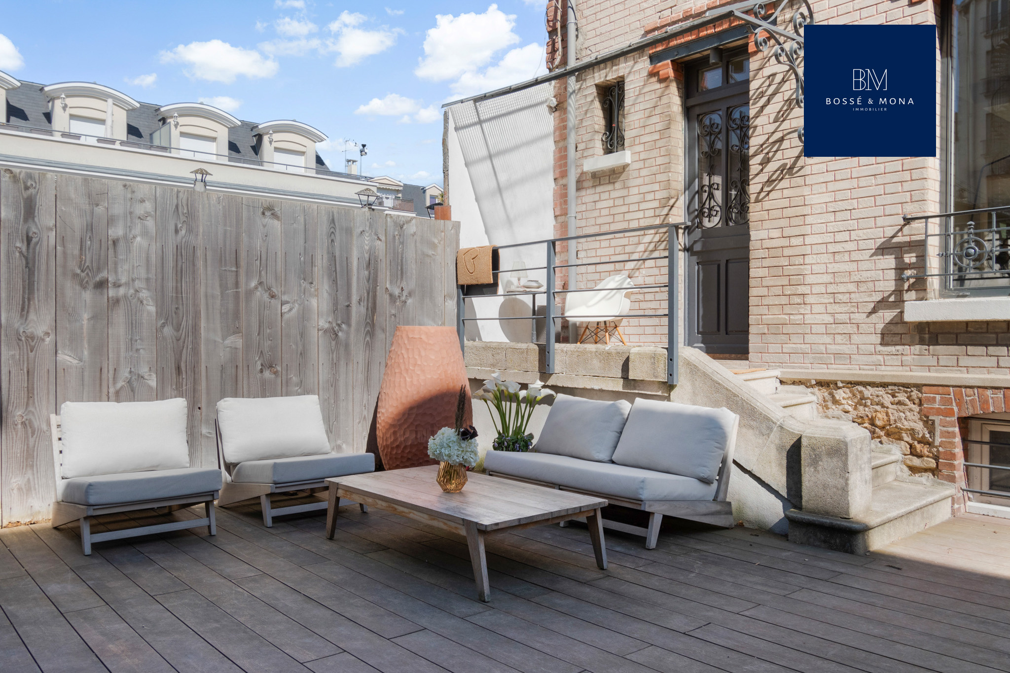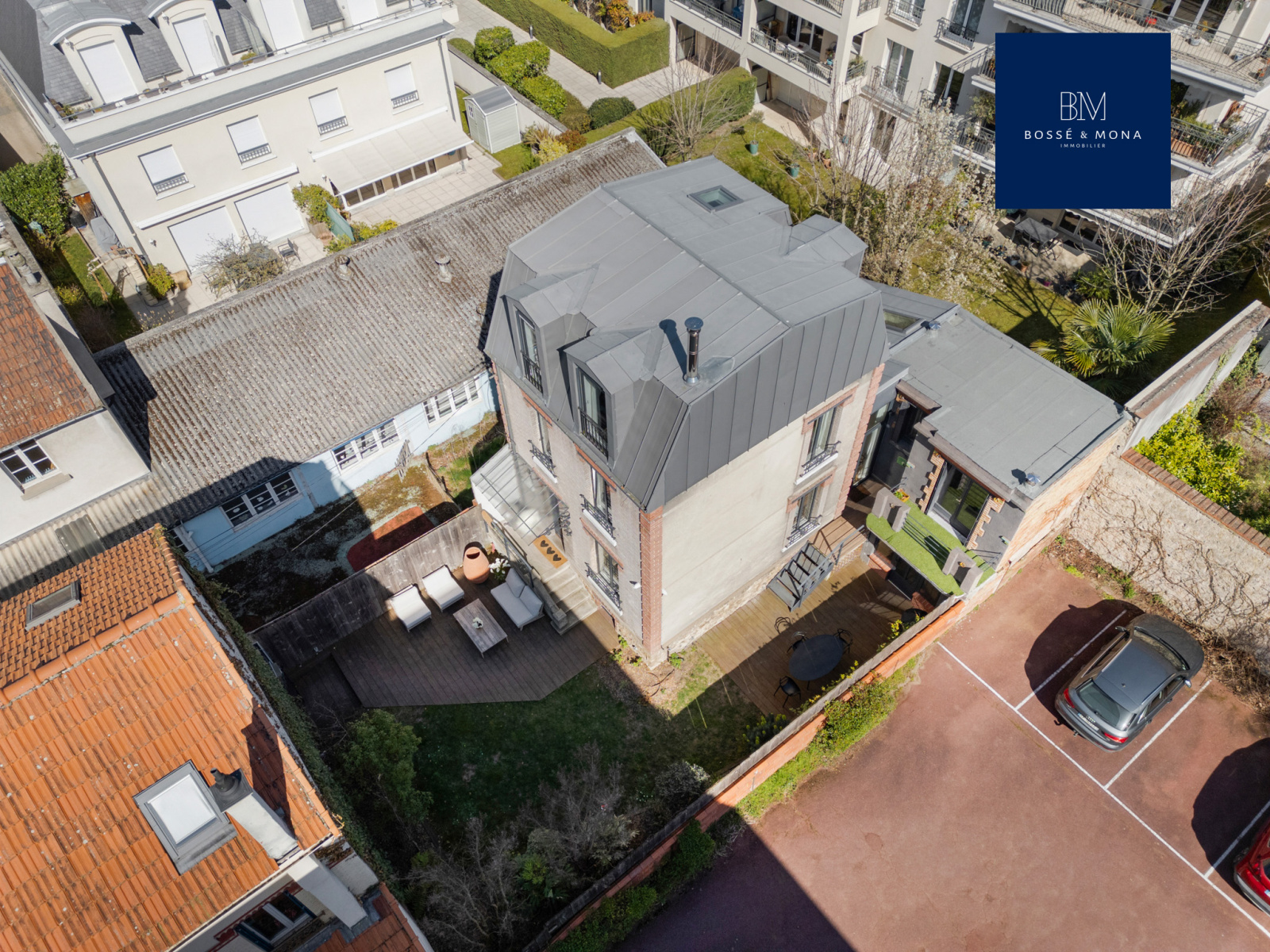 Bossé & Mona immobilier vous propose à la vente cette maison entièrement refaite par architecte de 189m2 au sol / 151m2 habitables, sur une parcelle de 200m2, située au calme, dans une impasse à 700m de la gare des Vallées et à 500m de la place de l’église et des commerces.